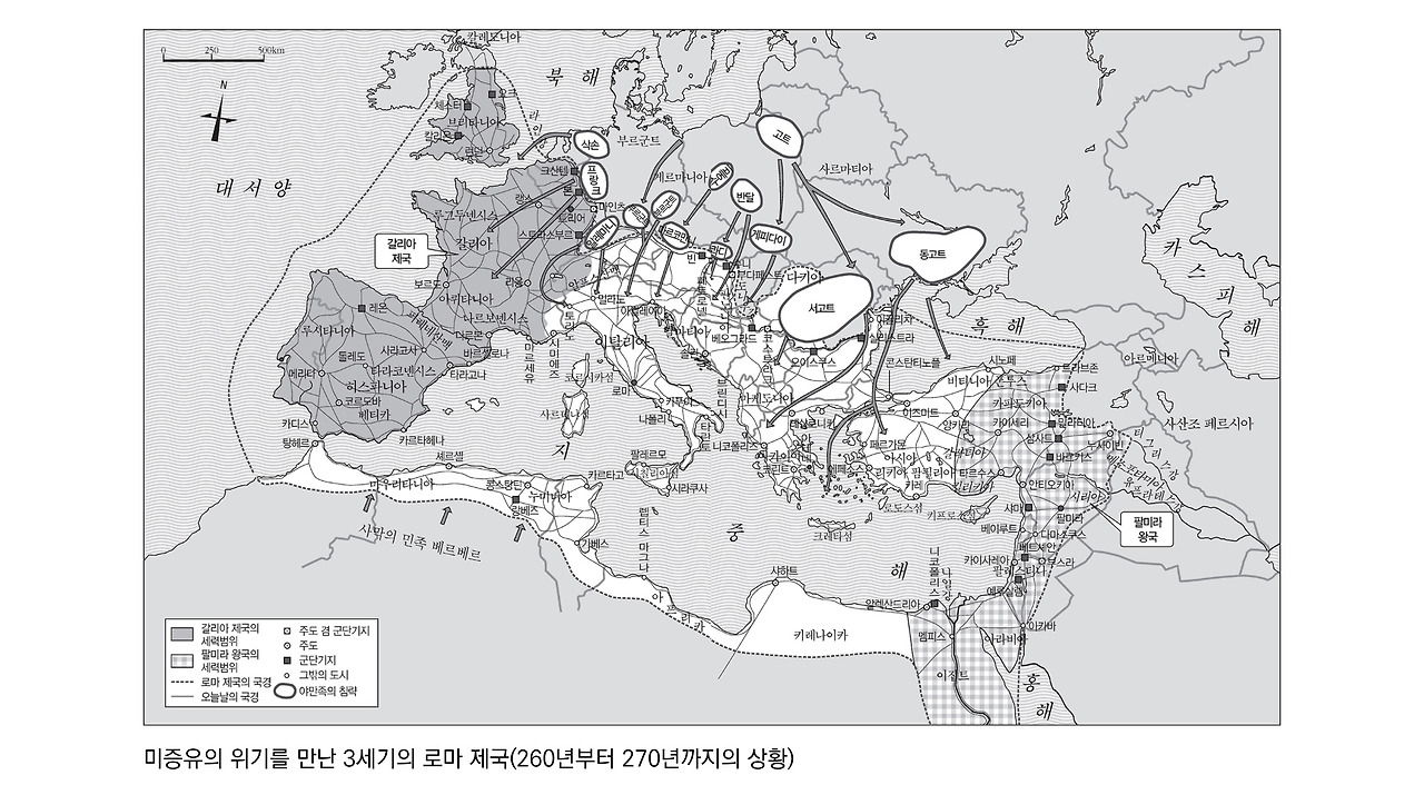 3세기 후반에 로마 제국을 습격한 최대 위협은, 도시로 흘러드는 인구의 급증과 다른 곳의 인구 감소였다고 말해도 지나치지 않을 것이다. 아버지를 잃고 단독 황제가 된 갈리에누스가 직면해야 했던 것은 로마 제국의 이런 '미증유의 국난' 현상이었다.