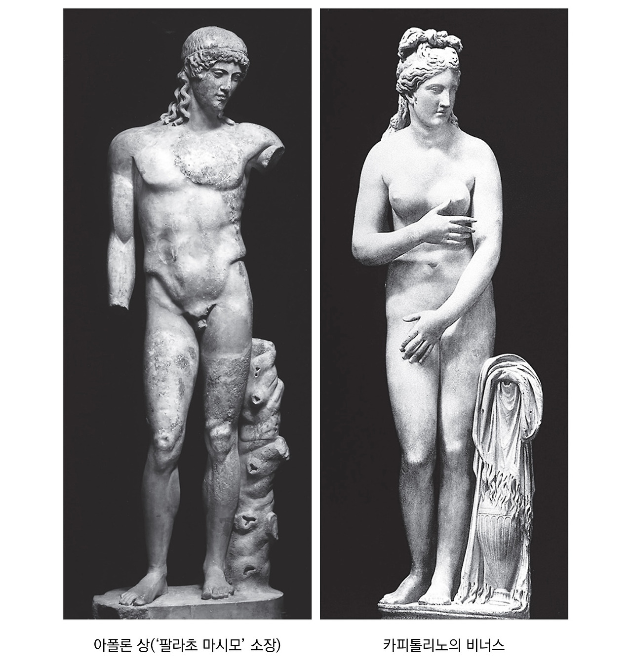 하지만 다른 조각상은 팔이 없거나 다리도 하나밖에 남아 있지 않아서 후세에 덧붙인 경우가 많은데, 깨진 금도 보이지 않고 얼룩도 없는 온전한 형태로 오늘날까지 남은 것도 존재한다. 로마의 카피톨리노 미술관에 전시되어 있는 ‘카피톨리노의 비너스’라는 입상이 그 좋은 예다.
