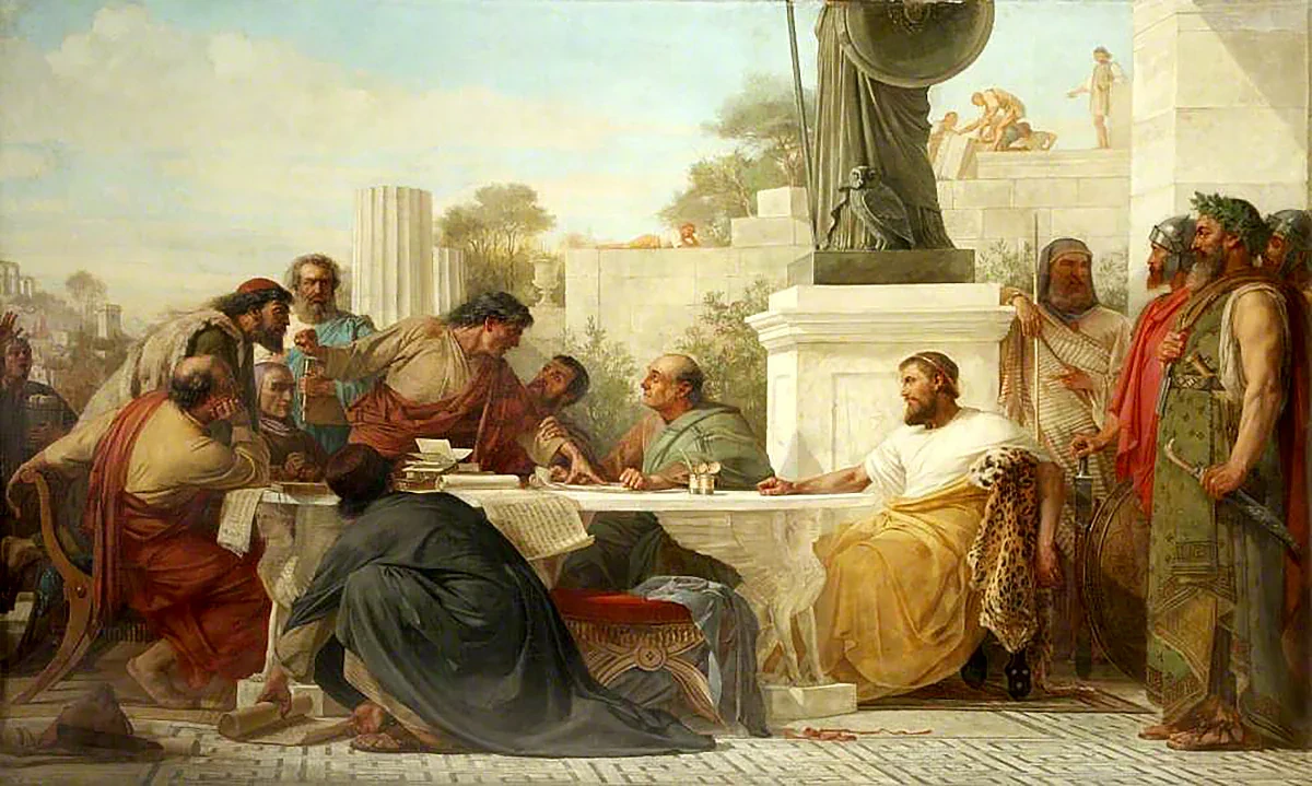 “나도 인생에 작별을 고할 때가 온 것 같소. 나는 항상 나에게 생명을 준 위대한 자연에 보답하기를 바라고 있었기 때문에, 지금 그것을 할 수 있게 된 것을 기쁘게 생각하오. 철학에서는 삶은 고통이고 죽음은 고통에서 해방되는 거니까 즐거움이라고 가르치고 있소. 또한 철학은 현세에서 업적을 쌓은 사람에게 신들이 주는 마지막 포상이 죽음이라고 말하고 있소.