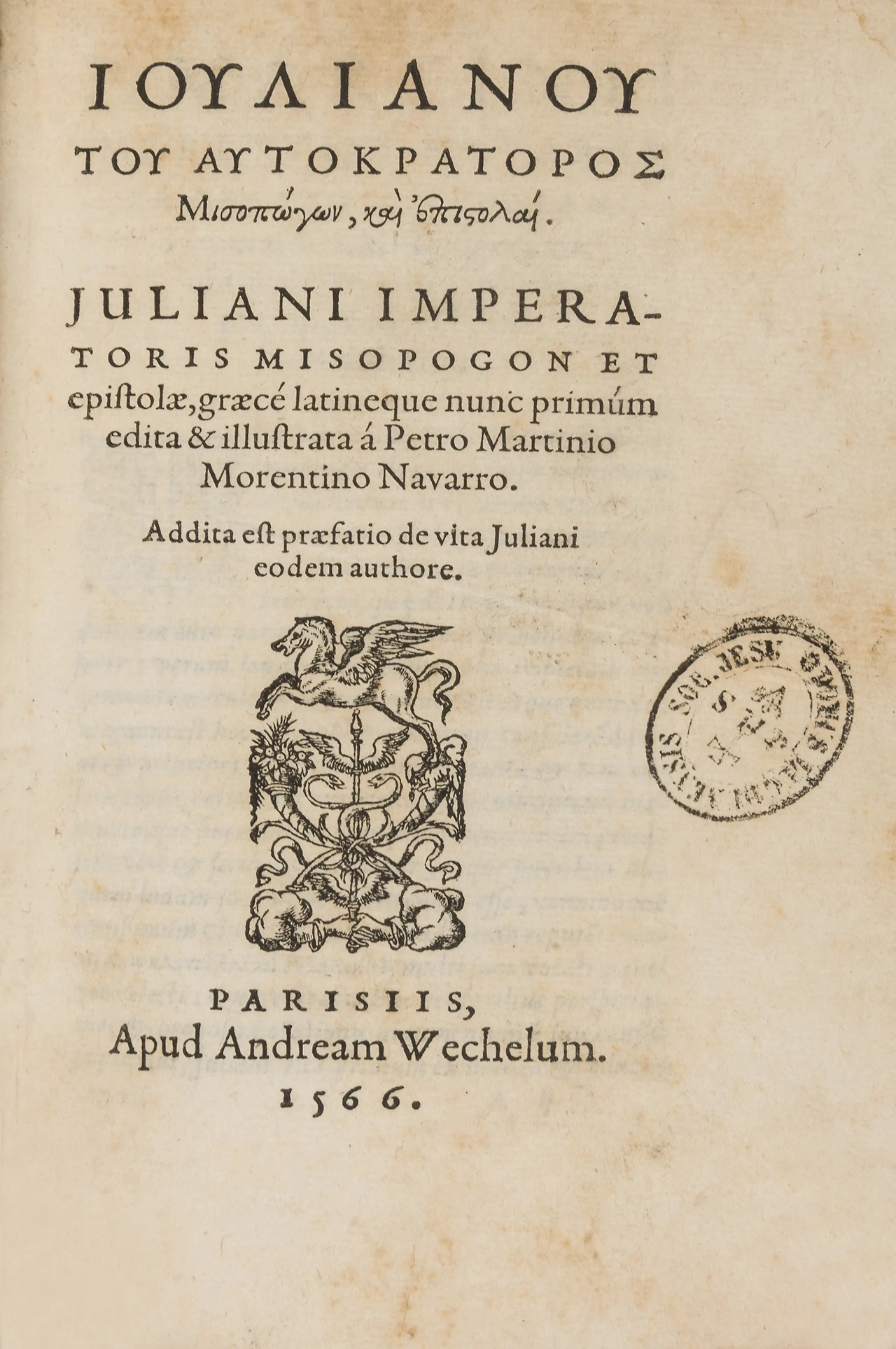 율리아누스는 안티오키아에 머무는 동안 많은 편지와 저작을 남겼다. 그 가운데 현대식 책자로 인쇄하면 40쪽도 채 안 되는 소품이지만 『미소포곤』(Misopogon)이라는 제목의 작품이 있다(https://misopogon.com/). 이 작품은 율리아누스가 그동안 쌓이고 쌓인 분노를 터뜨린 내용인데, 직접 대상으로 삼은 것은 안티오키아 주민이다. 『미소포곤』은 결국 마음에 걸리는 문장으로 끝난다.