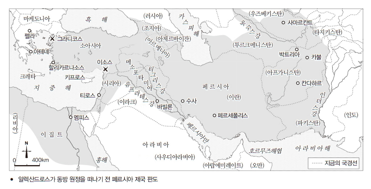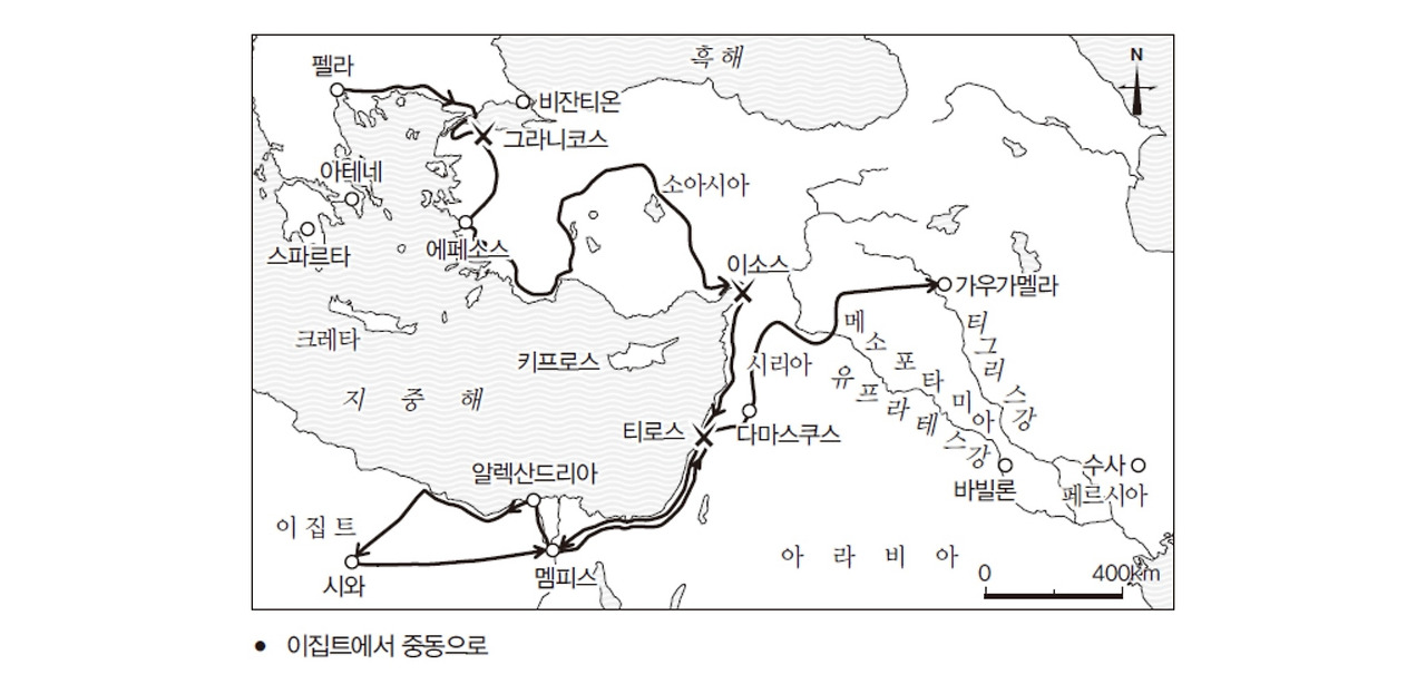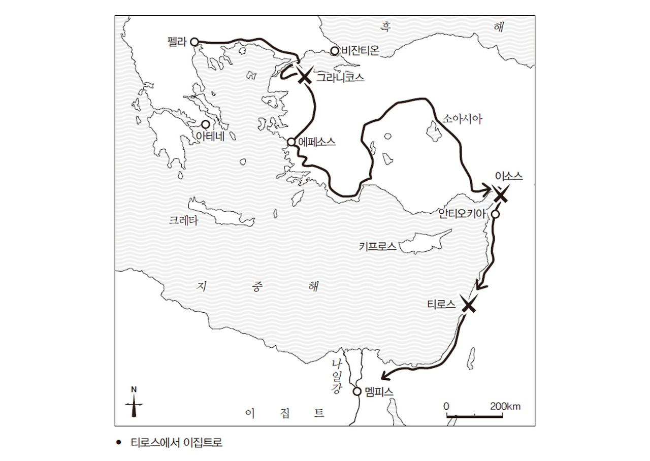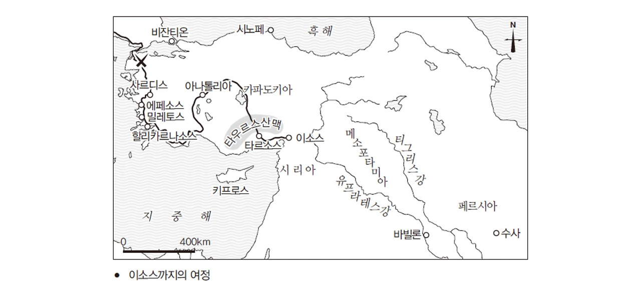 페르시아제국의 중추는 지중해의 동쪽 끝에서 시작해 유프라테스강을 넘어 티그리스강의 동쪽에 이르는 넓은 지역이다. 오늘날의 국가로 보면 중근동의 여러 나라, 즉 시리아, 이라크, 이란의 서쪽을 차지하고 있다. 유프라테스와 티그리스라는 두 강 사이에 있는 메소포타미아 지방이야말로 역사적으로 늘 중동의 중추였다. ‘이소스전투’의 승리가 지닌 참된 의미는 이 중추를 상대로 이겼다는 것이다.