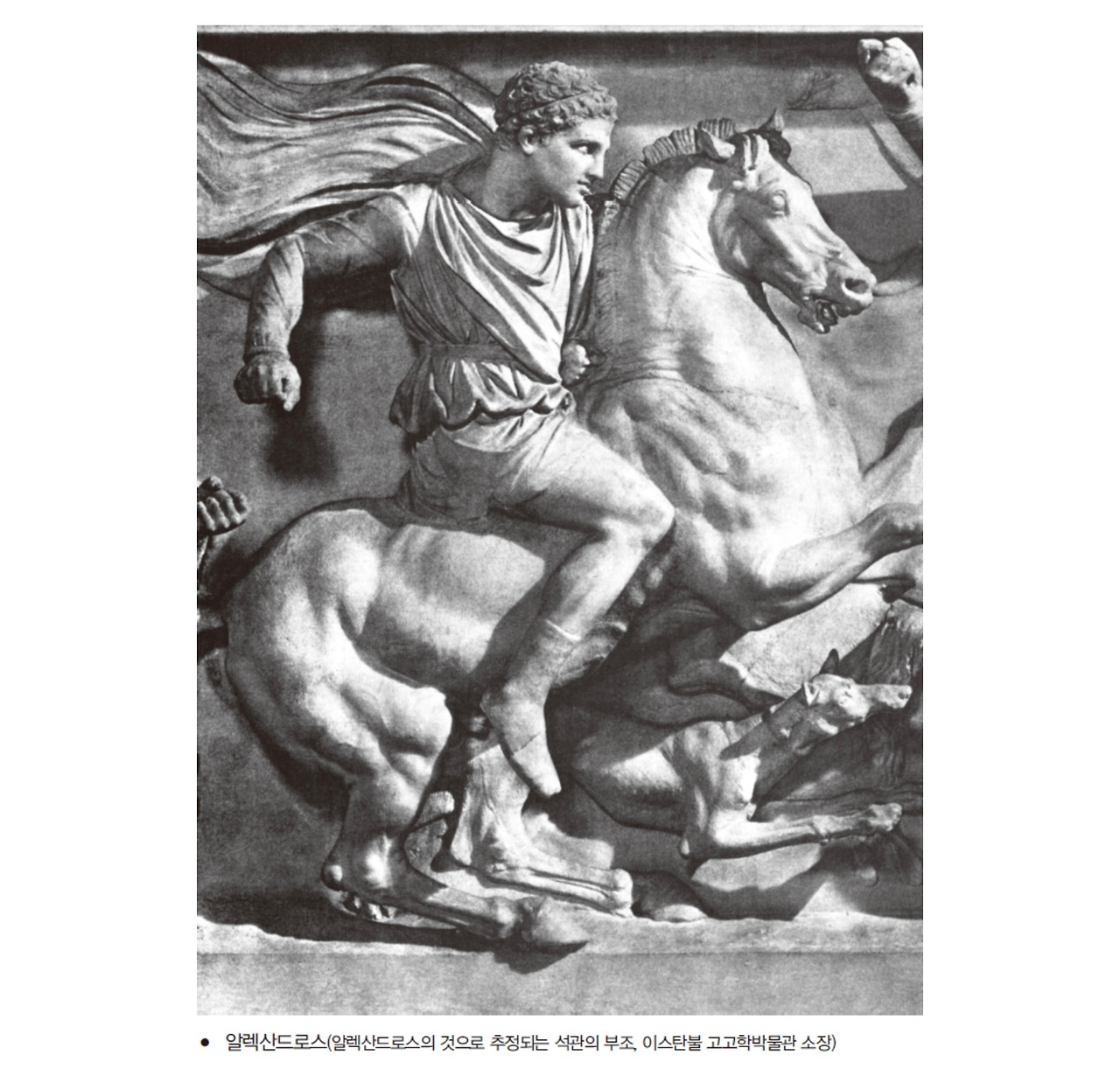 ‘이소스전투’가 전혀 다른 양상으로 제3막을 올린 것은 다리우스가 공포에 사로잡혔기 때문이다(이소스전투 3). 왼쪽에서 알렉산드로스가 선두에서 이끄는 마케도니아의 기병 군단이 밀려왔고, ‘불사신의 남자들’도 정예였지만 그래도 보병이었다. 차례로 적의 말발굽 아래 희생되어 1만 명 가운데 6,000명이 전사했다.