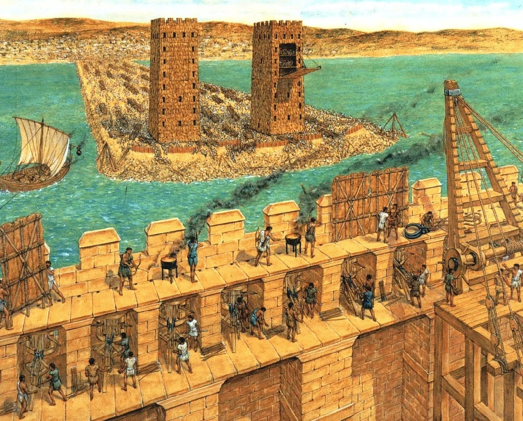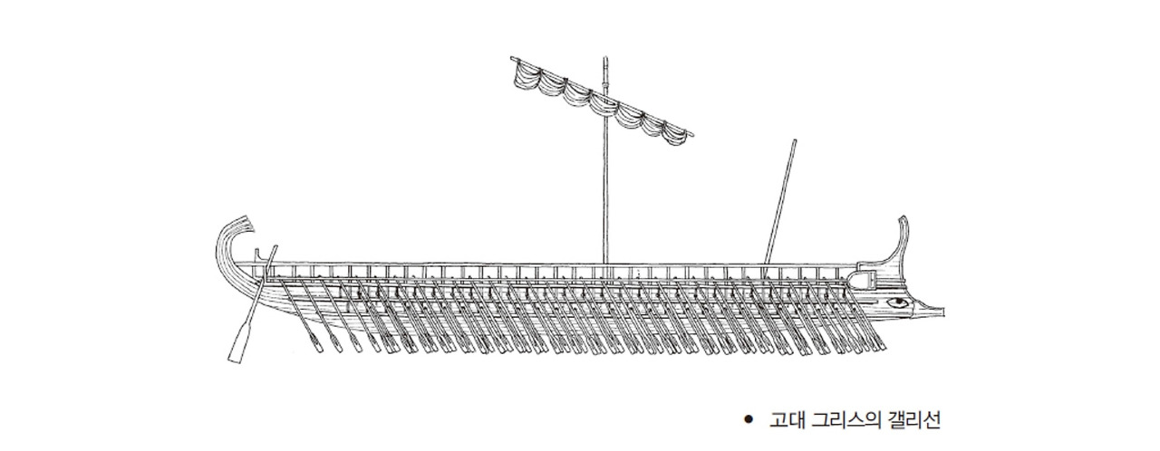 그 시대에 그리스와 달리 이집트나 페니키아를 포함한 오리엔트에서는 노예를 갤리선의 노 젓는 선원으로 활용했다. 해상에서 폭동을 방지하기 위해 노 젓는 선원은 쇠사슬에 묶여 있었고 당연히 무기도 가질 수 없었다. 따라서 해전이 벌어지든 상륙전이 벌어지든 갤리선의 노 젓는 선원이 병사로 변하는 일은 없었기 때문이다.