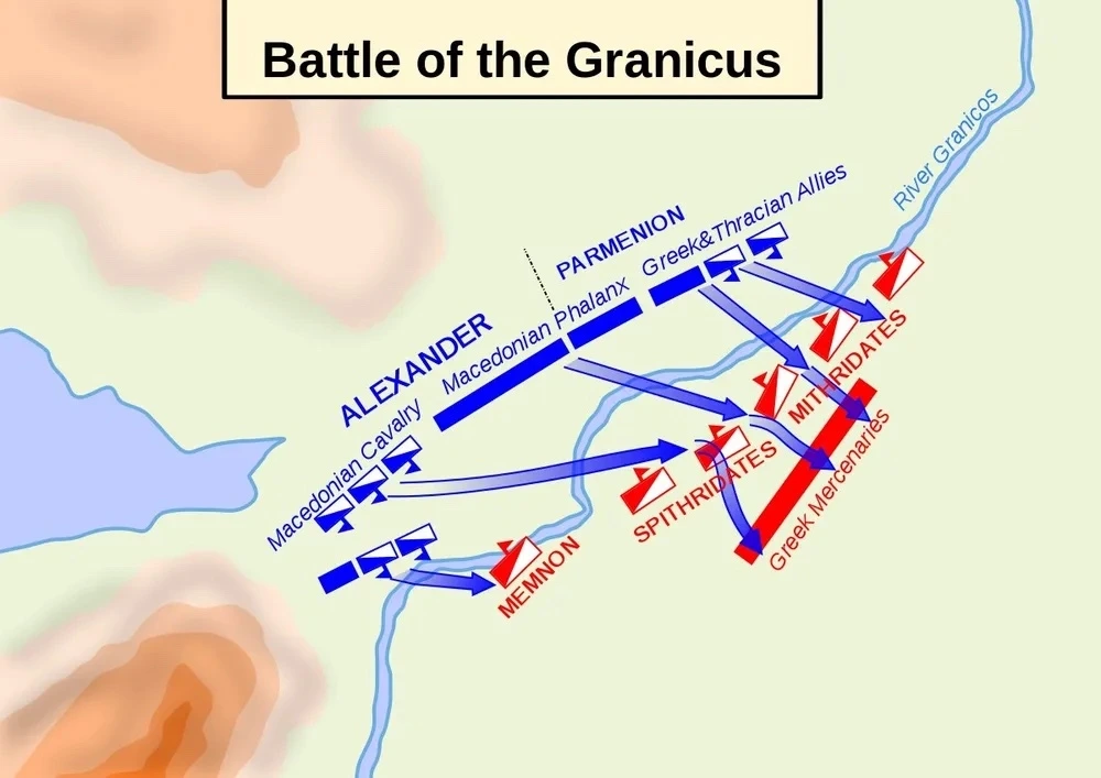 그리고 알렉산드로스는 그라니코스에서 전사한 페르시아 무장 300명의 군장을 다음과 같은 말과 함께 본국인 그리스로 보냈다. “스파르타인을 제외한 전체 그리스인에게 알렉산드로스가 보냄.”