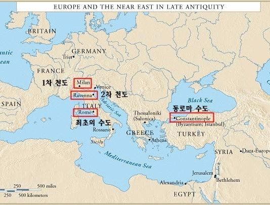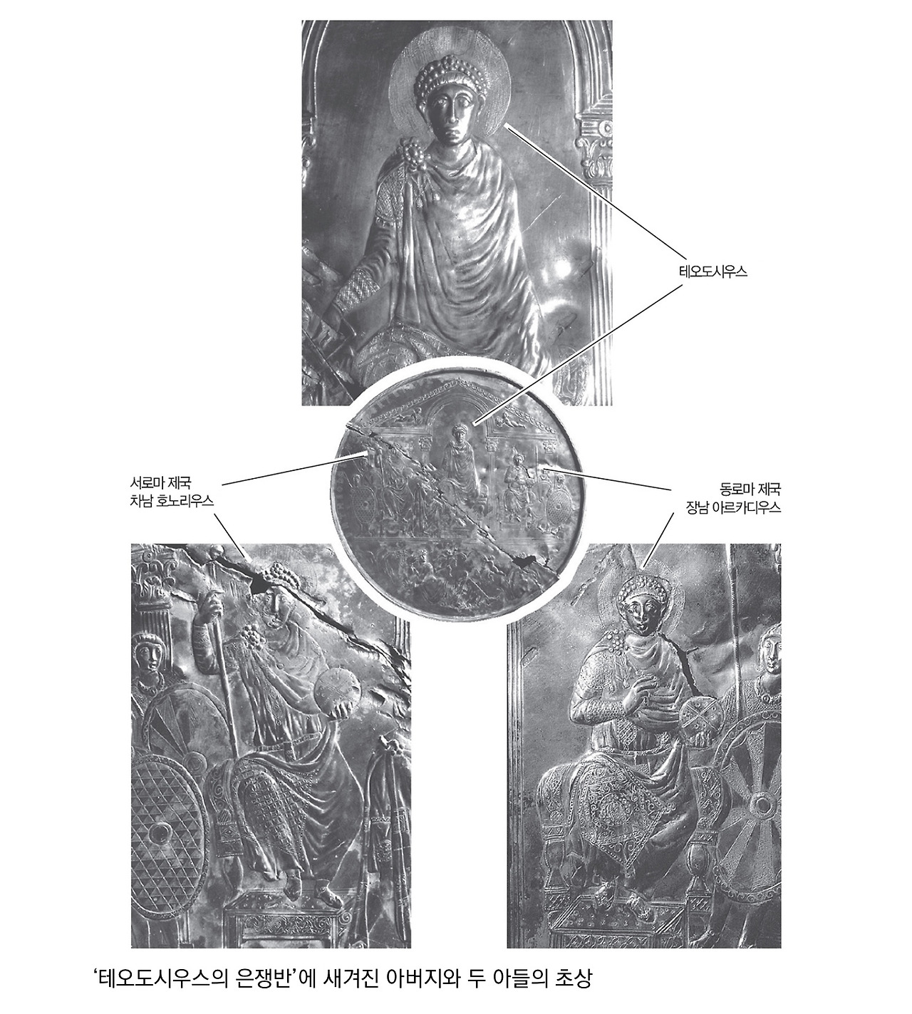 서기 395년 테오도시우스 황제는 사망하면서 당시 열여덟살 장남 아르카디우스(Arcadius)에게는 로마제국의 동방을, 열살밖에 되지 않은 차남 호노리우스(Honosius)에게는 서방 로마를 나누어 주었다(이로 인해 로마제국이 동로마제국과 서로마제국으로 분리되었다는 것이 역사학계의 정설이다).
