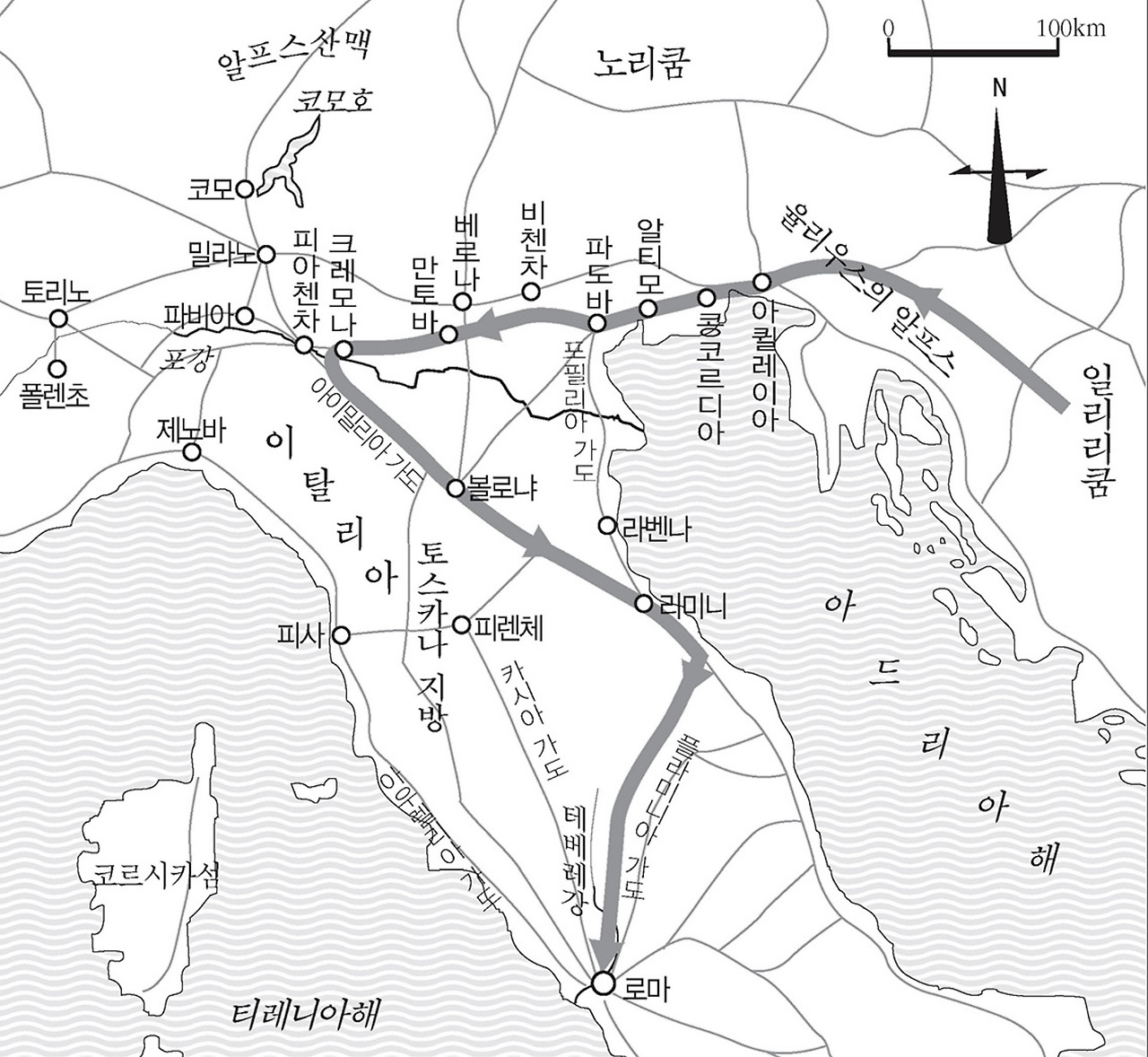 로마 황제의 호칭인 ‘임페라토르’는 군대를 이끌고 ‘국가’를 방위하는 책무를 맡은 사람이라는 뜻이다. 그 말 자체의 의미가 보여주듯, 로마 황제의 책무는 무엇보다도 먼저 국가 방위다. 철인 황제라고 불릴 만큼 지식인이었던 마르쿠스 아우렐리우스 황제도 10년 동안이나 도나우강 연안의 최전선에 머물다가 결국 그곳에서 죽었다. 로마 황제가 정말로 로마 황제였던 시대는 테오도시우스 1세를 마지막으로 끝난다.