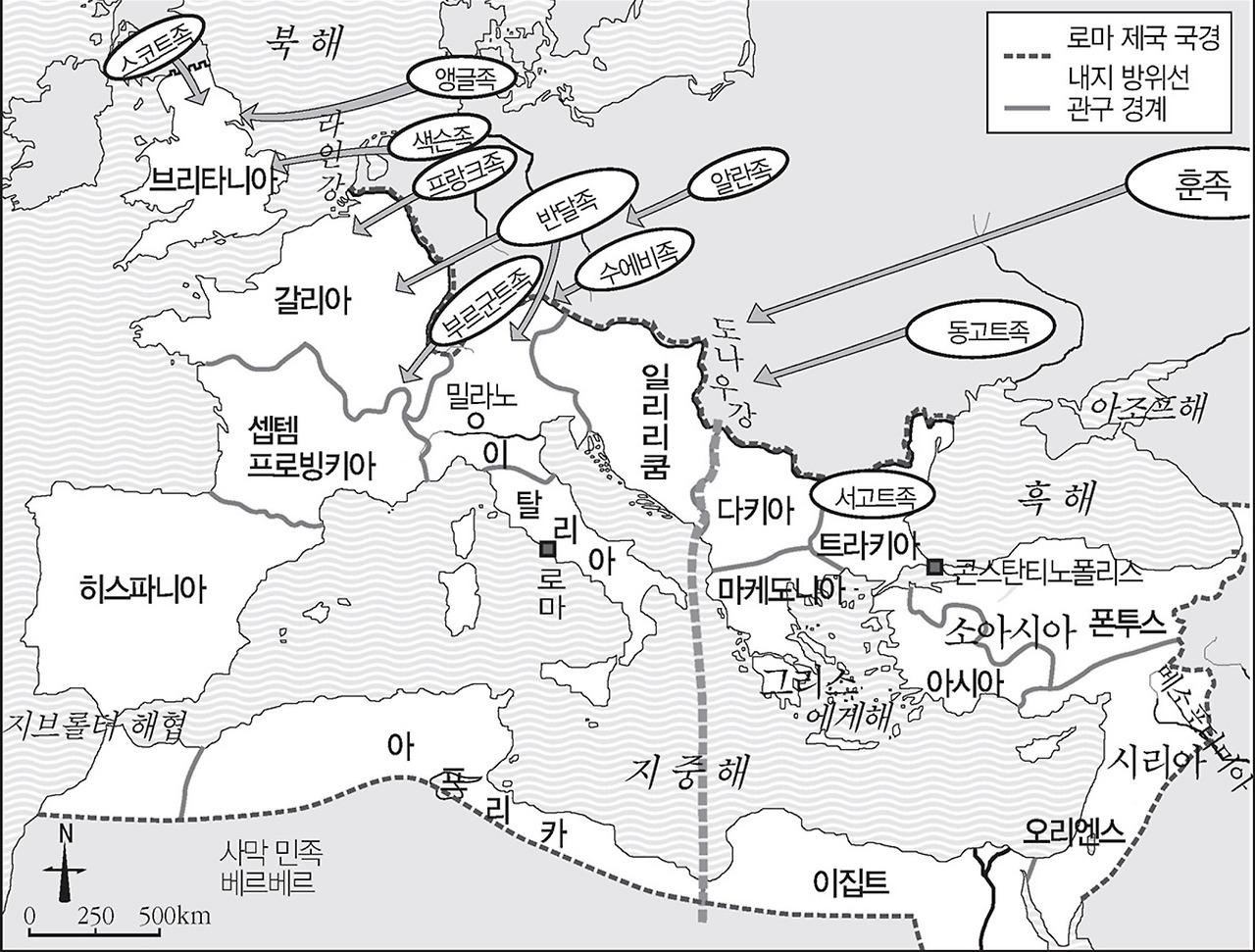 로마 제국의 마지막 세기가 되는 서기 5세기는 게르만계와 비(非)게르만계를 막론하고 ‘야만족’(barbarus)의 중요성이 더욱 커진 시대다. 통틀어 ‘바르바루스’라고 불리는 야만족에도 세 부류가 있었다.