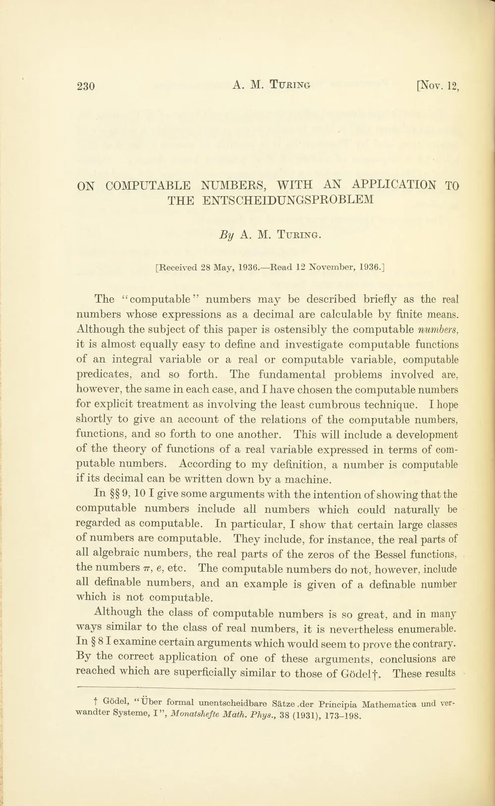 괴델이 계산법(computing) 분야에서 이룩한 연속 안타 중 첫 번째 홈런은 1930년에 수학의 기초를 주제로 쾨니히스베르크에서 3일 동안 열린 학회의 마지막 날 쟁쟁한 학자들이 보는 앞에서 터져 나왔다(그 자리에는 젊은 노이만도 있었다).