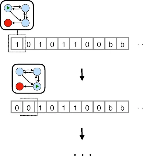 튜링은 1936년에 발표한 그의 유명한 논문 「계산 가능한 수와 결정 문제의 응용에 관하여(on computable numbers with an application to the entscheidungsproblem)」에서 기호를 쓰고 지울 수 있는 무한히 긴 테이프와, 이 테이프에 기록된 기호를 읽는 상상의 기계를 제안했다[이것이 그 유명한 튜링머신(Turing Machine)이다].