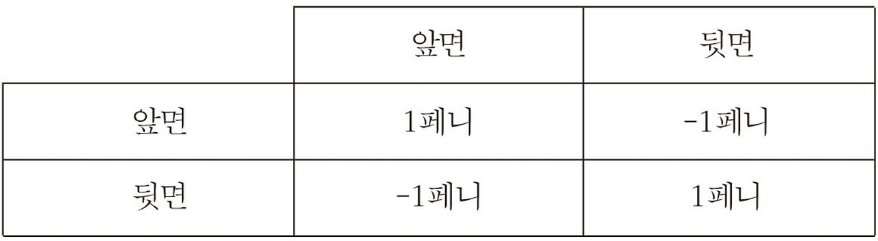 지금도 프랑스를 제외한 대부분의 나라에서는 노이만의 1928년 논문을 게임이론의 초석으로 인정하고 있다. 이 논문에서 노이만이 제시한 증명의 핵심은 ‘혼합전략(mixed strategies)’인데, 나중에 그가 이 개념을 설명하기 위해 도입한 2인 제로섬 게임이 바로 ‘동전 짝맞추기(Matching Pennies)’ 게임이다.
