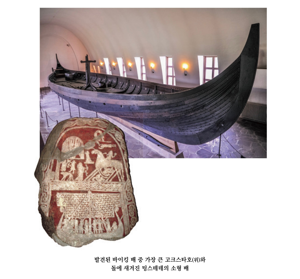 대표적인 것으로는 노르웨이의 고크스타(Gokstad)에서 건져 올린 배(아래 그림 참조)를 들 수 있다. 길이 23.8미터, 폭 5.1미터 크기에 110제곱미터의 돛을 달고 32명이 노를 젓는 이 배는 현재 보존된 바이킹 선박 중 가장 큰 편에 속한다. 이 배는 전투, 교역, 사람과 상품 이송에 두루 사용할 수 있었다. 19세기 말에 똑같이 복제한 ‘바이킹’ 호를 타고 노르웨이의 베르겐을 떠나 미국 시카고까지 항해하는 데 성공함으로써 바이킹 시대에 북아메리카까지 오가는 항해가 충분히 가능했다는 결론을 얻었다.