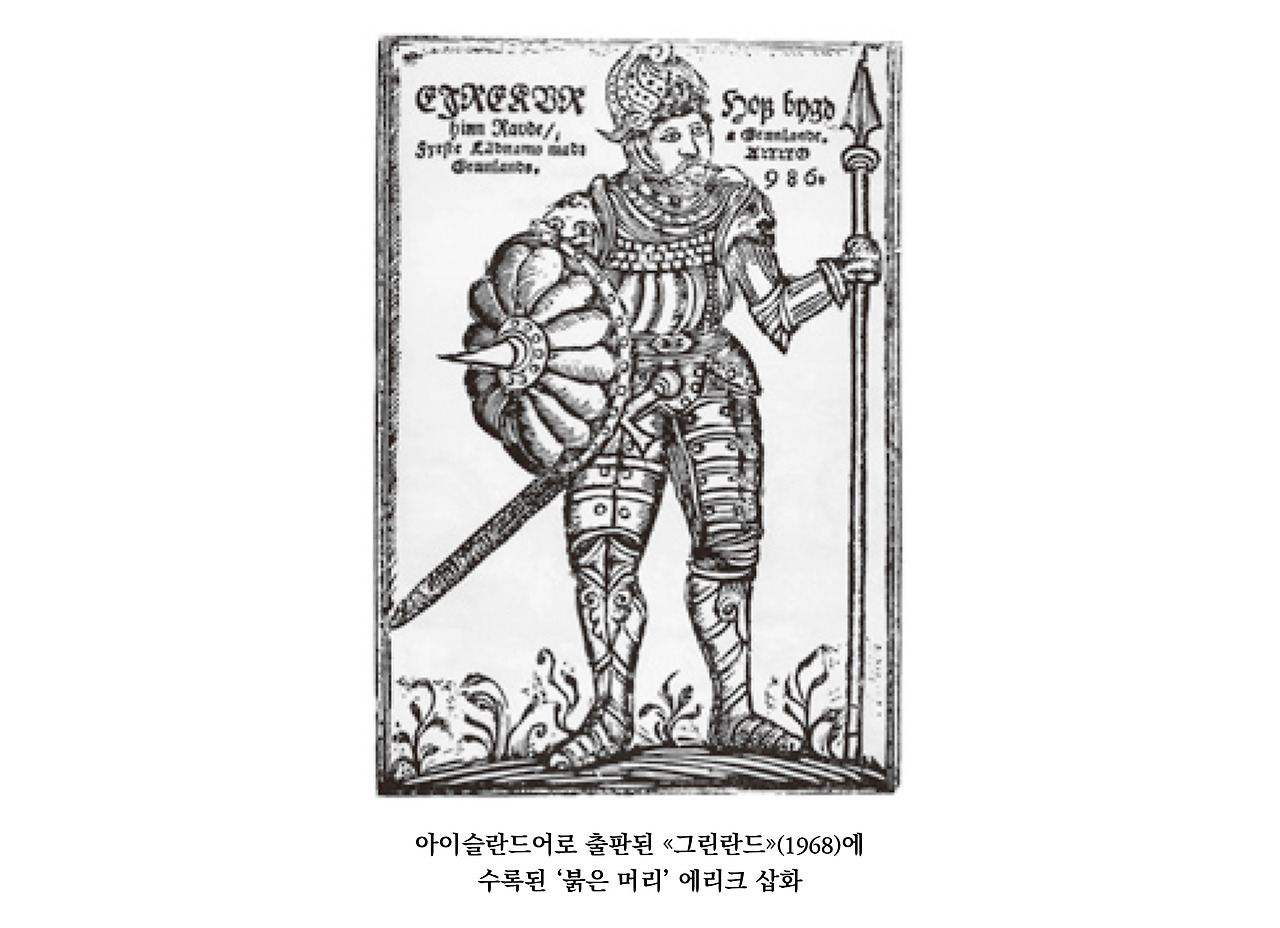 에리크 또한 모험심이 강해서 이 기회에 서쪽에 있다고 알려진 섬을 찾아가 보기로 결심했다. 에리크가 서쪽으로 항해해 가니 과연 큰 섬이 나타났다. 그는 섬에 상륙해서 3년 내내 섬 곳곳을 두루 살펴보고는 거주가 가능하다는 사실을 확인했다. 추방 기간이 지나 아이슬란드로 돌아온 에리크는 사람들에게 자신이 발견한 섬에 가서 살자고 권유했다. 그는 사람들을 유혹하기 위해 그린란드(‘녹색의 땅’)라는 멋진 이름을 붙였다고 한다.