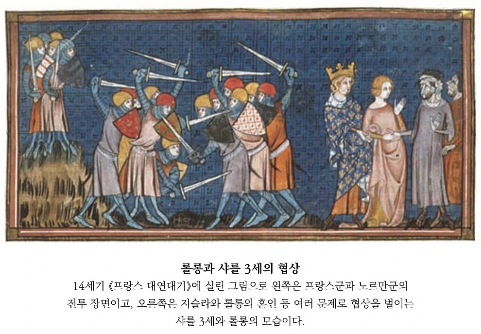 885~887년에는 배 700척에 나눠 탄 바이킹 무리가 파리까지 들어와 2년 동안 포위 공격을 하는 사태까지 벌어졌다. 프랑스 국왕(정확히 말하면 프랑스의 선조 격인 서프랑크왕조의 왕)으로서는 바다에서 밀물처럼 밀려오는 외적을 효과적으로 막아낼 역량이 없었다. 그럴 바에는 차라리 바이킹 집단에게 땅을 주어 신하로 만들고 이들이 다른 바이킹의 침략을 막도록 하자는 계책을 내놓았다.