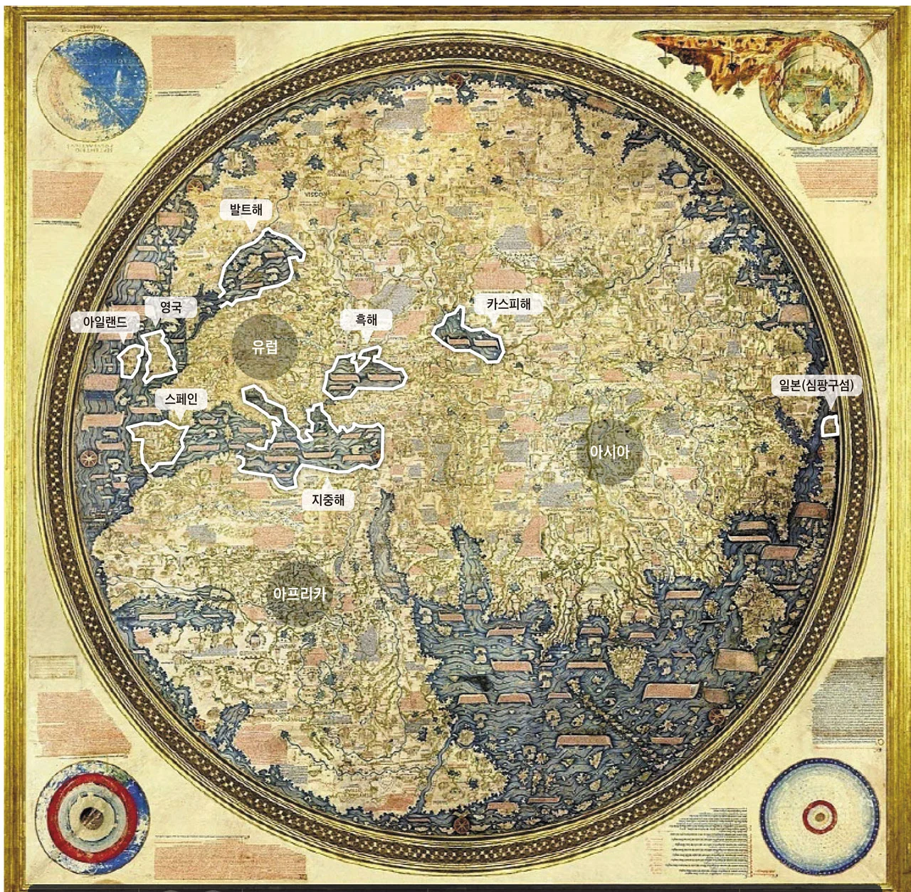대항해시대의 서막이 열리는 15세기 중엽이 되면 새로운 세계 인식을 담아내는 혁신적인 지도들이 등장하기 시작한다. 베네치아의 수사 프라 마우로(Fra Mauro)가 제작한 지도가 대표적이다.