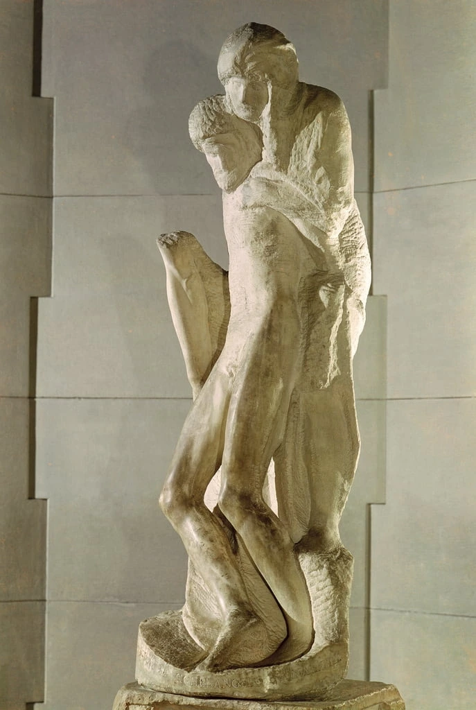 미켈란젤로(Michelangelo di Lodovico Buonarroti Simoni)는 1475년 3월 6일 피렌체 인근의 카프레세Caprese에서 태어났다. 미켈란젤로는 13세에 기를란다요 공방에 도제로 들어가서 각종 기예를 익혔다. 곧 당대 최고 권력자인 로렌초 데 메디치(Lorenzo de’ Medici)의 눈에 들어 그의 후원을 받으며 일취월장으로 성장한다. 그러나 1492년 후원자 로렌초가 사망한 후 젊은 예술가 또한 굴곡진 삶을 살았다.