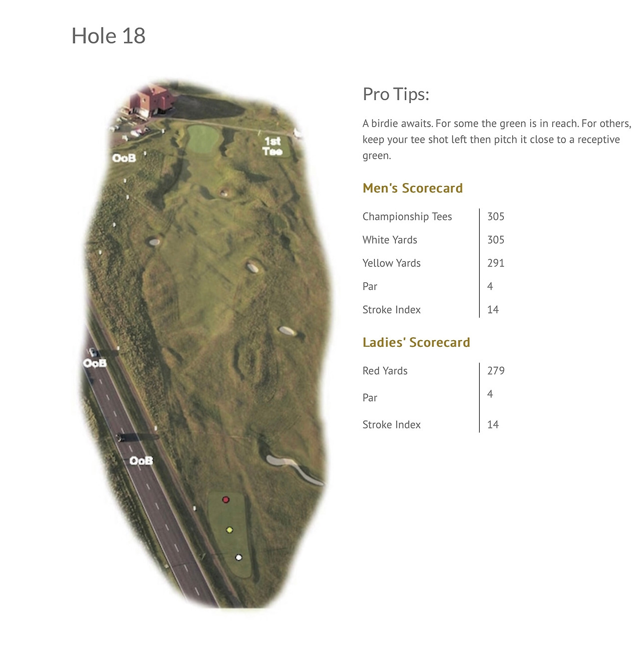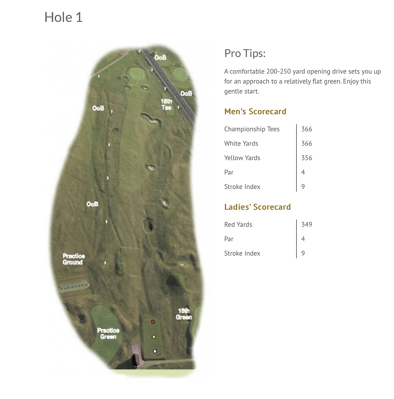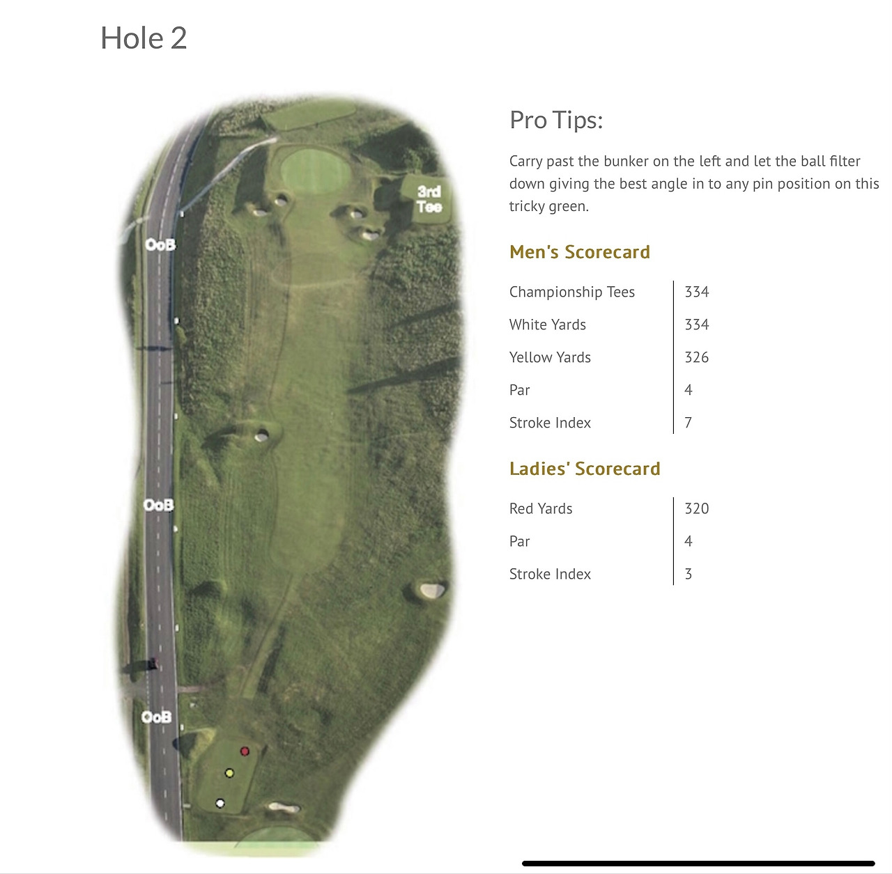 평탄한 1번 홀을 지나면 바로 차들이 다니는 도로가 나오고 여기를 건너면 그린이 보이지 않는 상태에서 심한 오르막 페어웨이를 바라보며 티샷을 해야 하는 2번 홀이 나타난다.