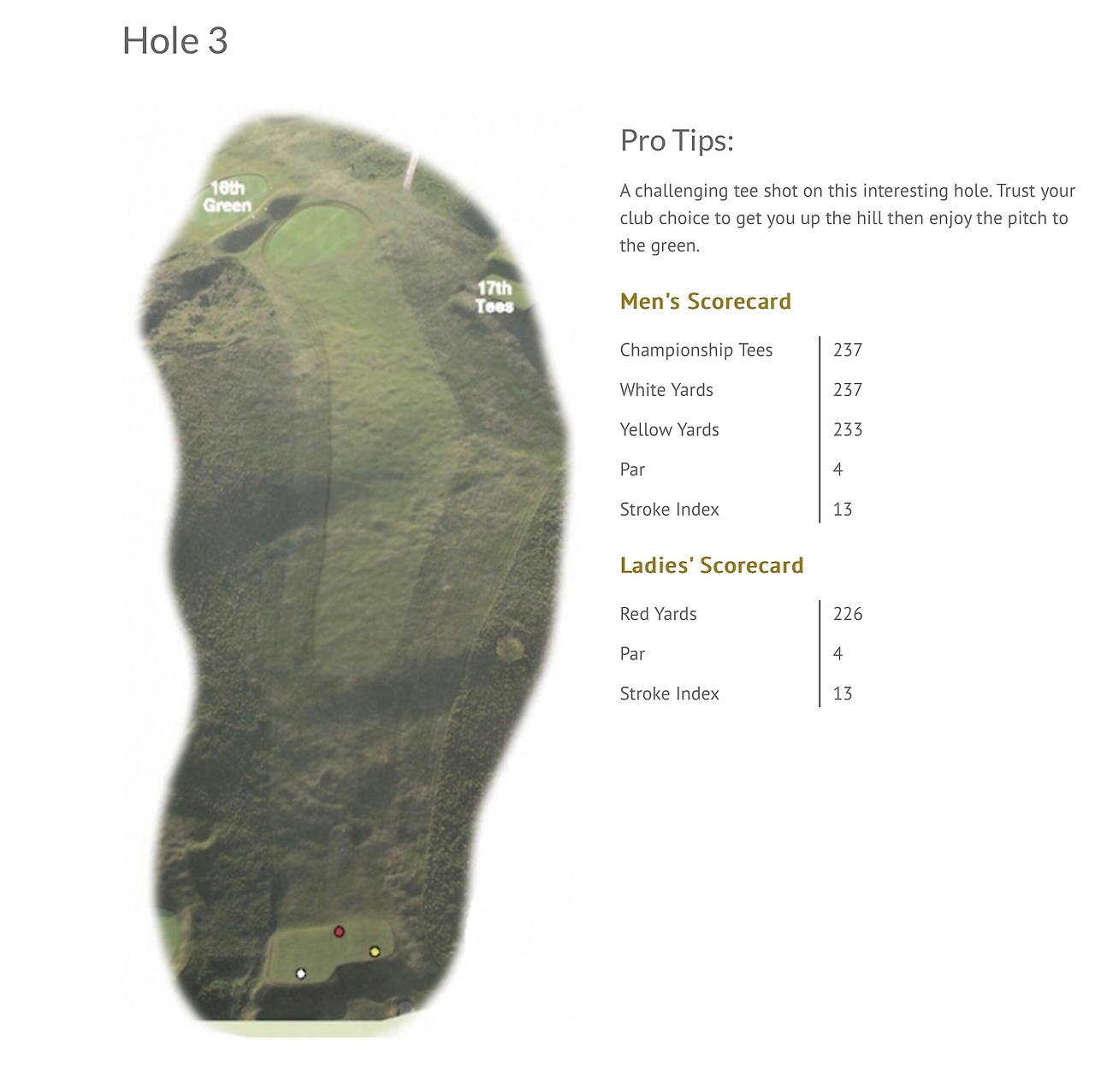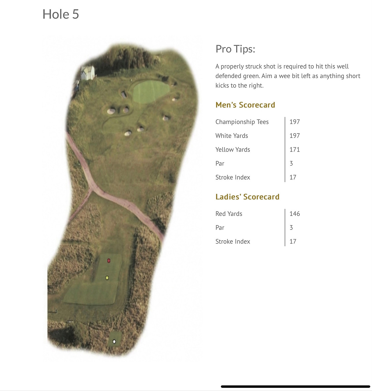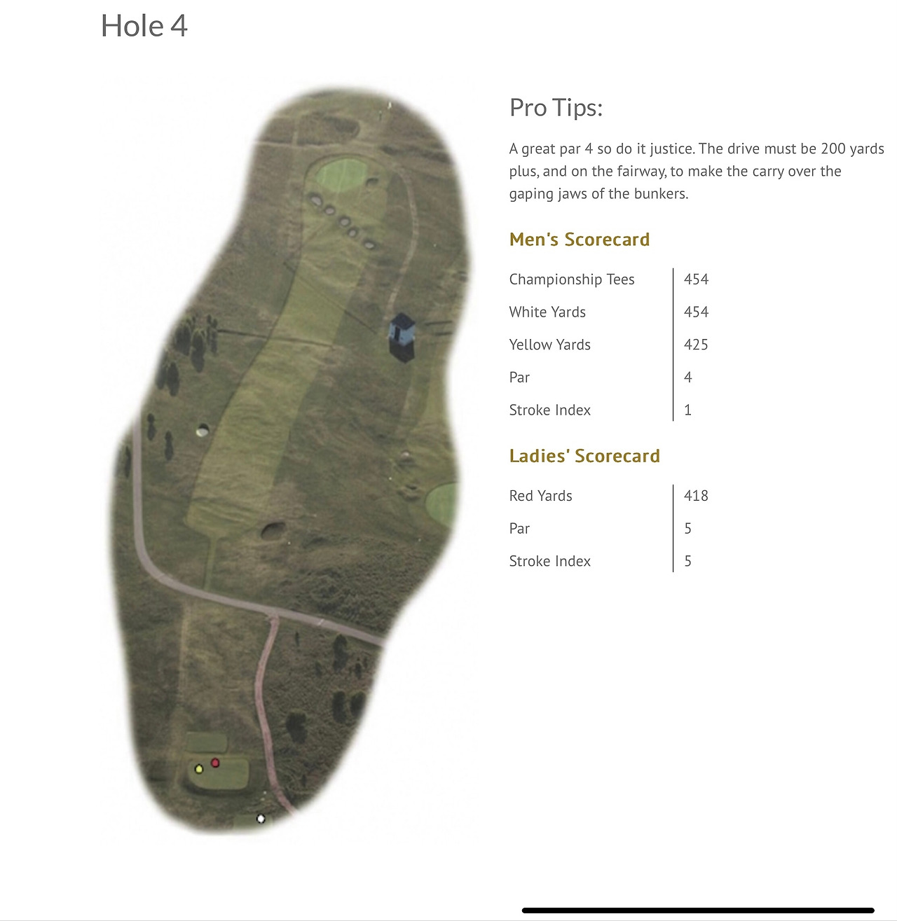 평탄한 1번 홀을 지나면 바로 차들이 다니는 도로가 나오고 여기를 건너면 그린이 보이지 않는 상태에서 심한 오르막 페어웨이를 바라보며 티샷을 해야 하는 2번 홀이 나타난다.