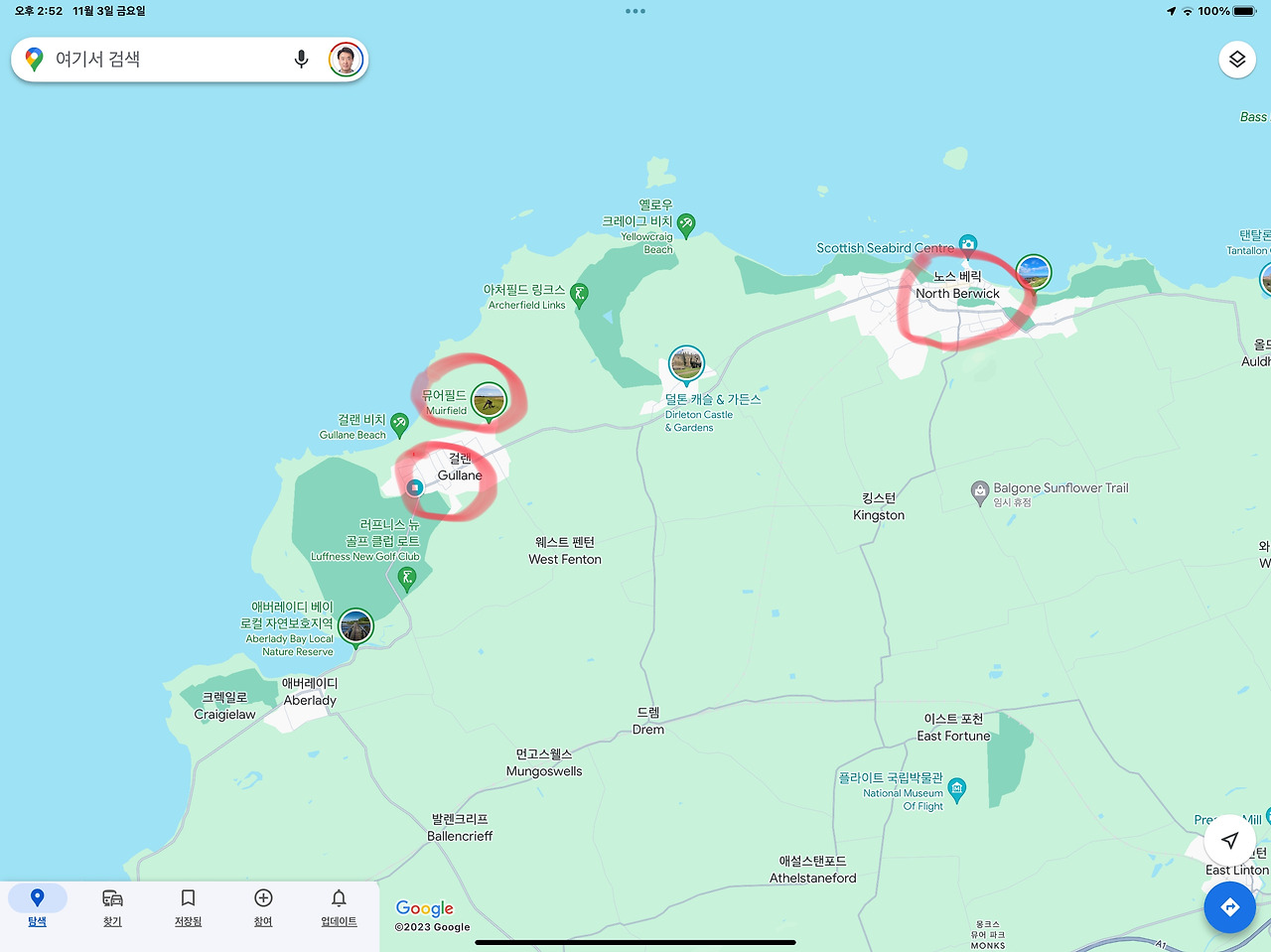스코틀랜드에서의 넷째 날에는 세인트앤드루스를 빠져나와 에든버러시를 지나 역시 해안가에 위치해 있는 Gullane(골프장 소개 동영상을 보면 이 단어의 어원은 불분명하고 출신 지역에 따라 “길린“, “걸레인”, “걸랜” 등으로 발음하기도 한다는데 공식 발음은 “걸린”인 것 같다) Golf Club에서 라운딩을 하였다.