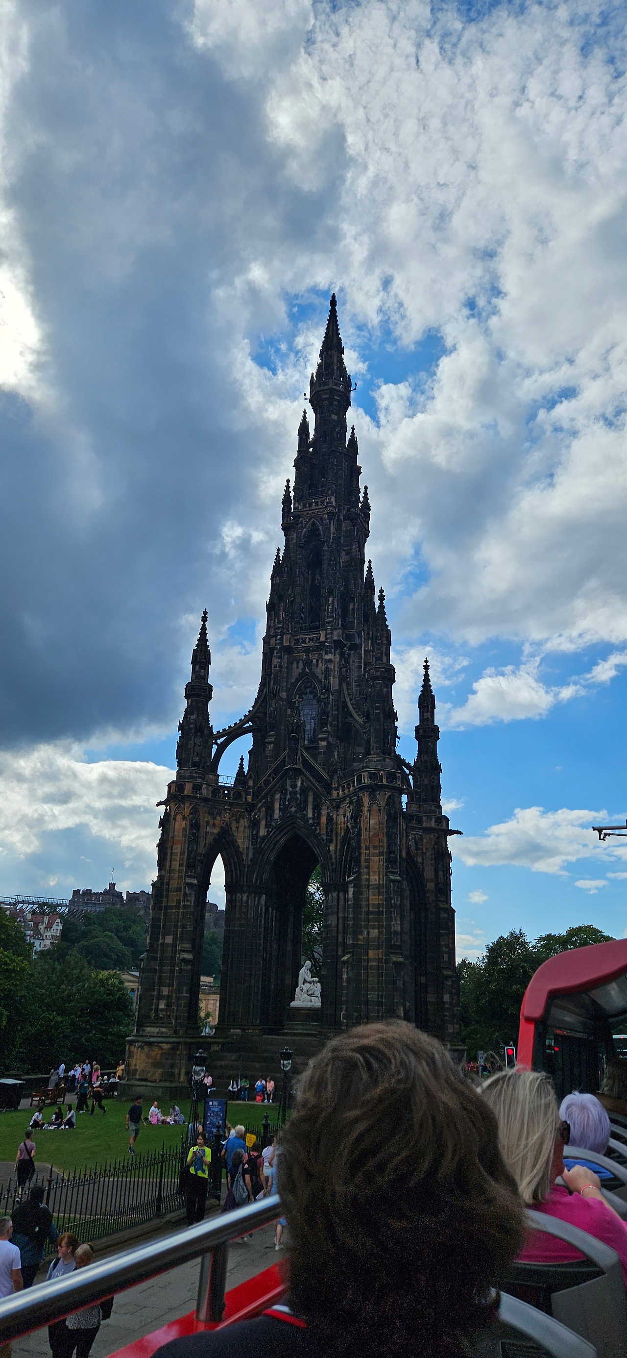 에든버러 하면 자연스럽게 떠오르는게 'Harry Potter'인데, 롤링(J.K. Rowling)이 해리포터를 썼다고 해서 유명해진 'The Elephant House'와 'Nicolson's Cafe'(지금은 'Spoon'으로 이름이 바뀜)가 있는 빅토리아 거리에서 사진 좀 찍고 스코틀랜드가 배출한 경제학자 아담 스미스(Adam Smith) 동상(머리 위에 웬 모자를 씌웠나 했더니 주차금지 꼬깔을;;;) 아래서도 사진 한 장^^ 마무리는 깔끔하게 2층버스로 시내 투어!!