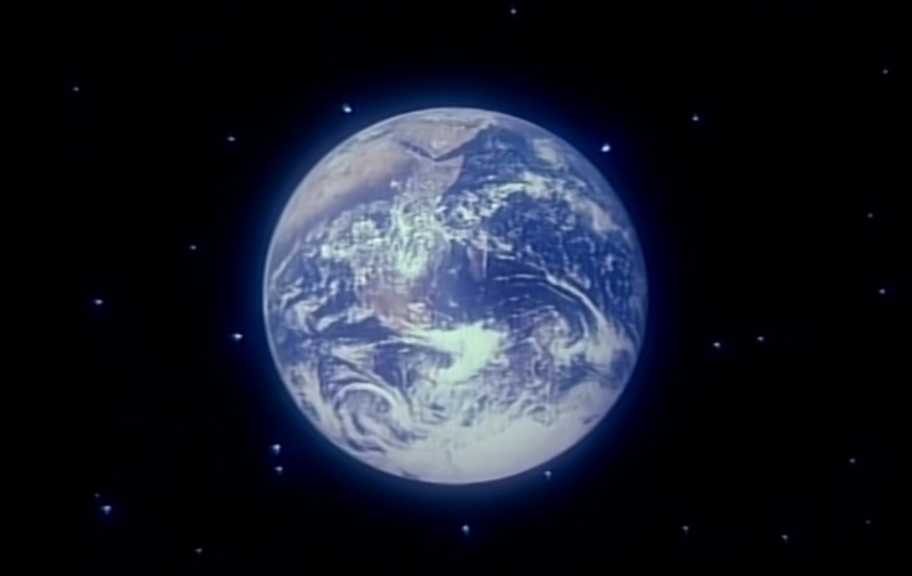 칼 세이건은 먼 우주에서 우주선을 타고 지구로 다가가는 상황을 설정하며 코스모스를 묘사하고 있다.