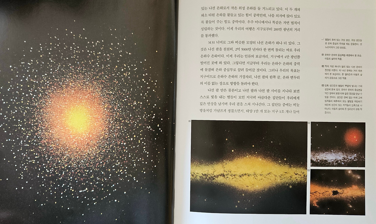 “은하는 기체와 티끌과 별로 이루어져 있다. 수십억 개에 이르는 별들이 무더기로 모여 은하를 이룬다. 별 하나하나가 누군가에게는 태양일 수 있다."