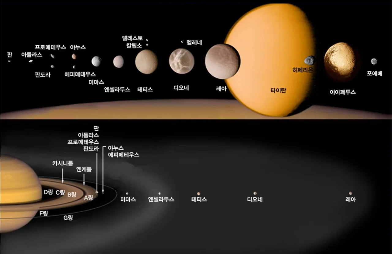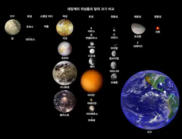 그에 반해 해왕성(Neptune), 천황성(Uranus), 태양계의 보석인 토성(Saturn) 그리고 목성(Jupiter)은 거대한 기체 덩어리들이다. 이 행성들은 하나도 빠짐없이 얼어붙은 위성들을 주르르 거느리고 있다.