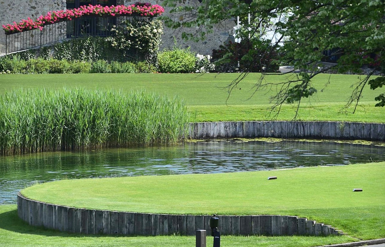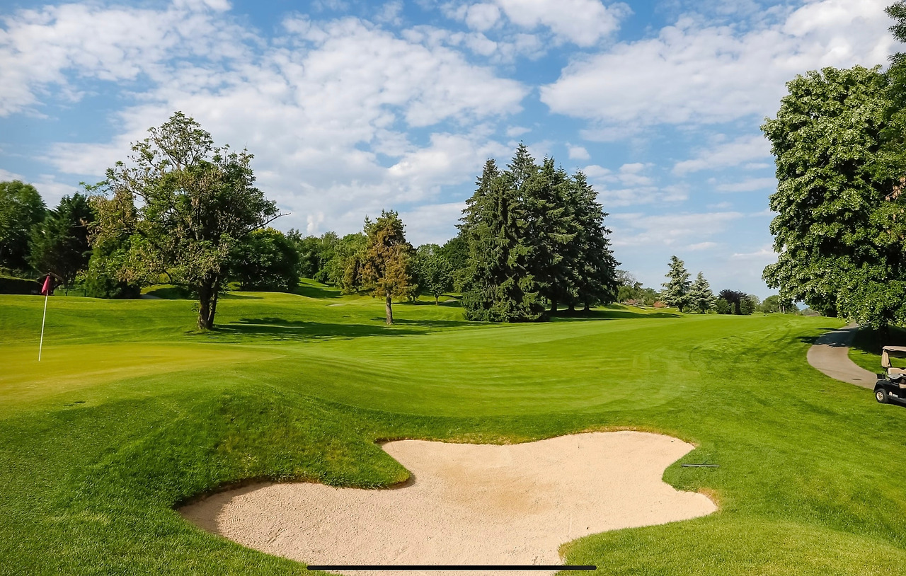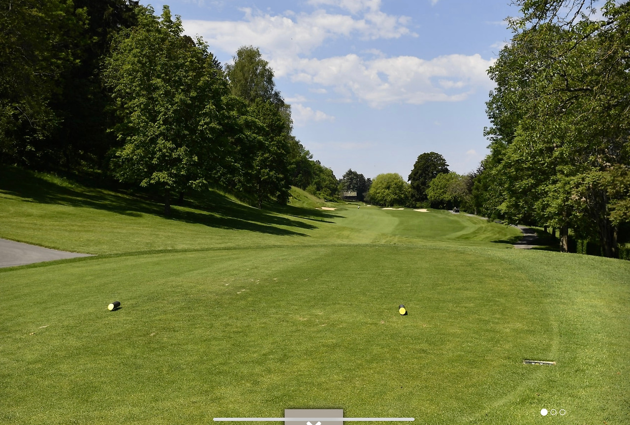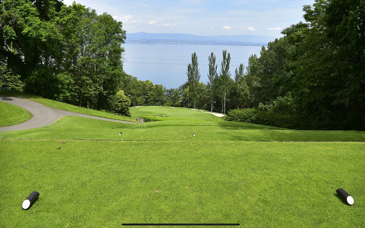 게다가 그린도 오른쪽에서 왼쪽으로 경사가 꽤 심하고 홀컵 주변에서 레만호 방향의 잔 라이도 있어 핀에 가깝게 붙여 온그린을 하지 않으면 투퍼트로 홀아웃하기가 쉽지 않은 핸디캡 1번 홀이다.