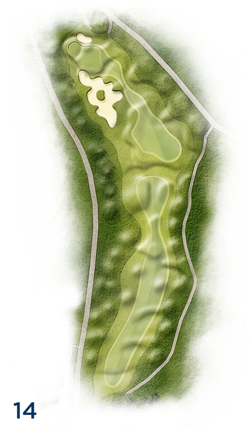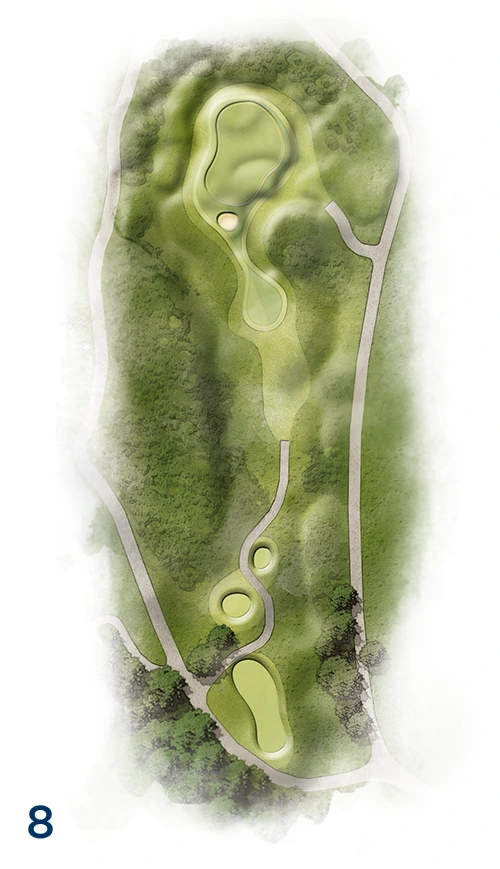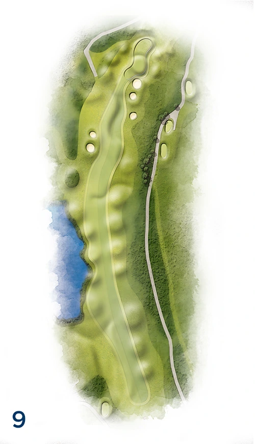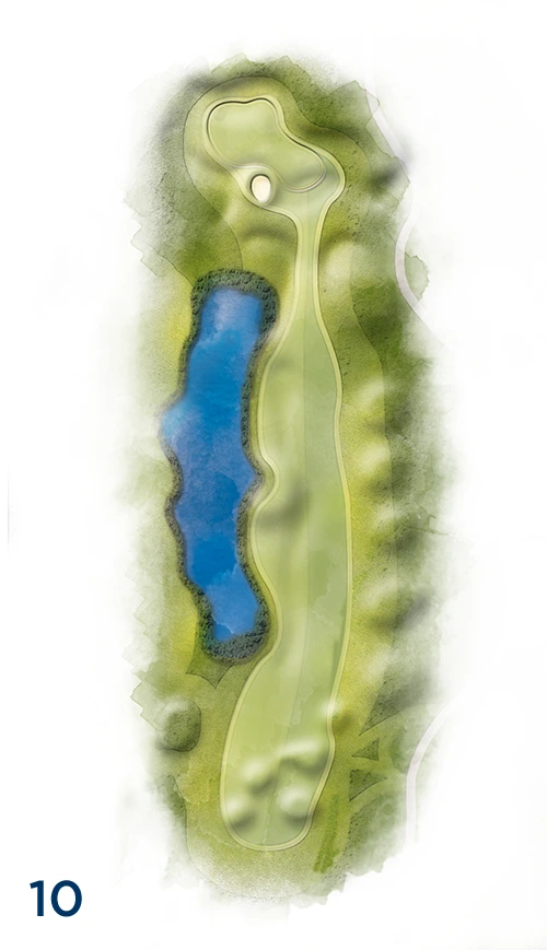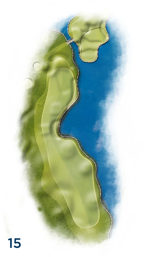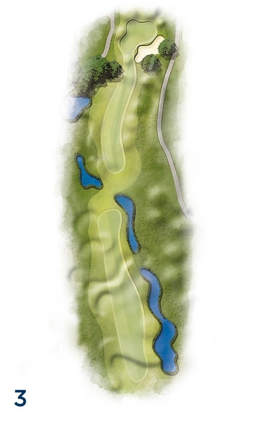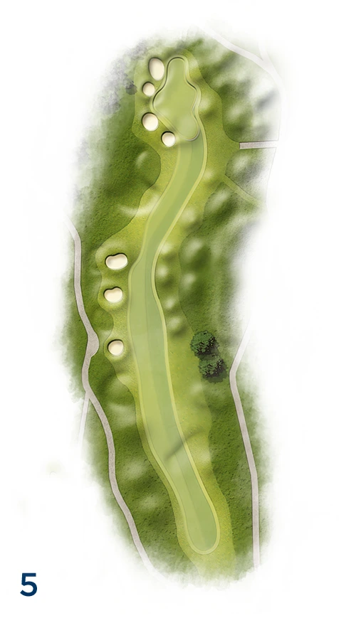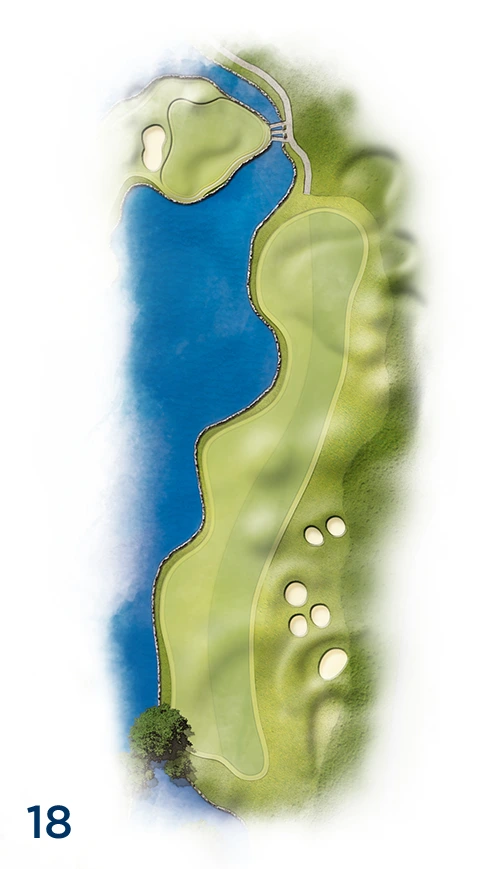 티샷 지점부터 계속 왼쪽에 연못이 이어지고 있어 상당히 부담을 주는 데다가 그린 자체도 아일랜드 그린이어서 웬만큼 거리가 많이 나가지 않으면 세컨드샷을 정확하게 온그린 시키기가 상당히 부담스럽고 오른쪽에는 턱이 높은 벙커와 풀이 긴 러프가 있어 조금만 페어웨이를 벗어나면 파온을 포기해야 하는 상황이 발생한다.