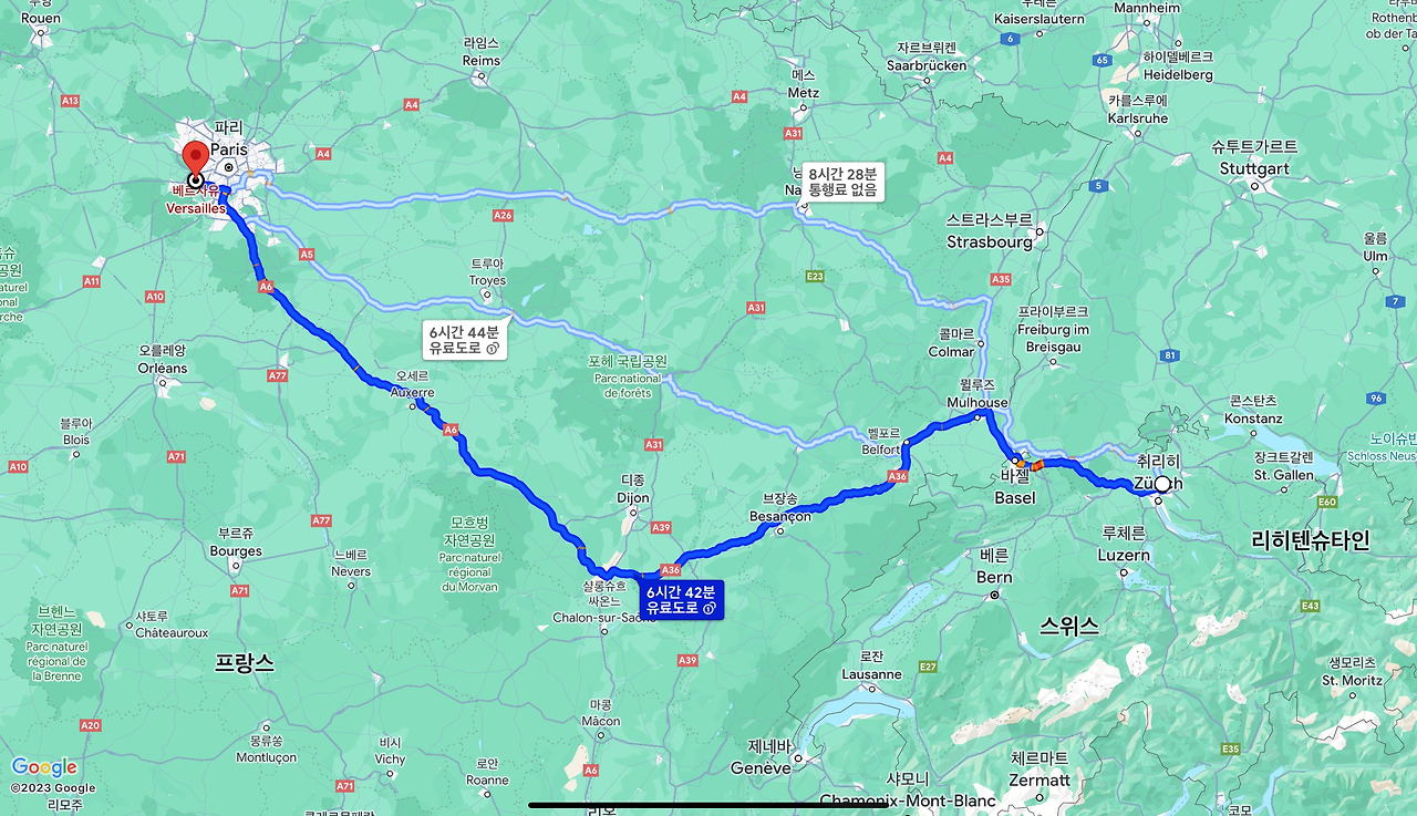 스코틀랜드 골프 여행을 마치고 스위스 취리히 공항으로 돌아온 우리는 하룻밤을 공항 근처 호텔에서 묶고 바로 다음 날인 2023년 9월 12일 아침 렌터카로 파리를 향해 출발했다.