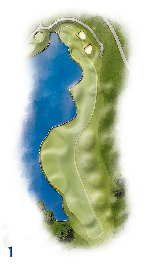 1번 홀은 화이트티 기준 353미터의 파4홀인데 핸디캡 4번이고 처음부터 난이도가 확 느껴지면서 뭔가 기선을 제압당하는 느낌이 드는 홀이다.