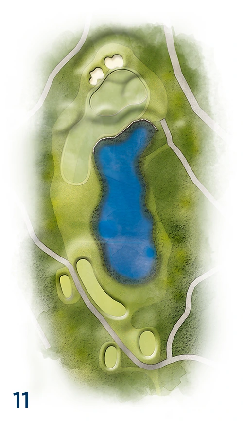 티샷이 페어웨이를 지키면 세컨드샷이 호수를 건너 140-150미터 정도를 쳐야 온이 될 수 있고 오른쪽으로 약간 밀리면 벙커에 들어갈 수 있어 세컨드샷이 상당히 부담스러웠다. 특히 벙커에 들어가면 탈출하면서 자칫 반대편 해저드에 들어갈 위험이 있어 신중하게 벙커샷을 해야 한다.