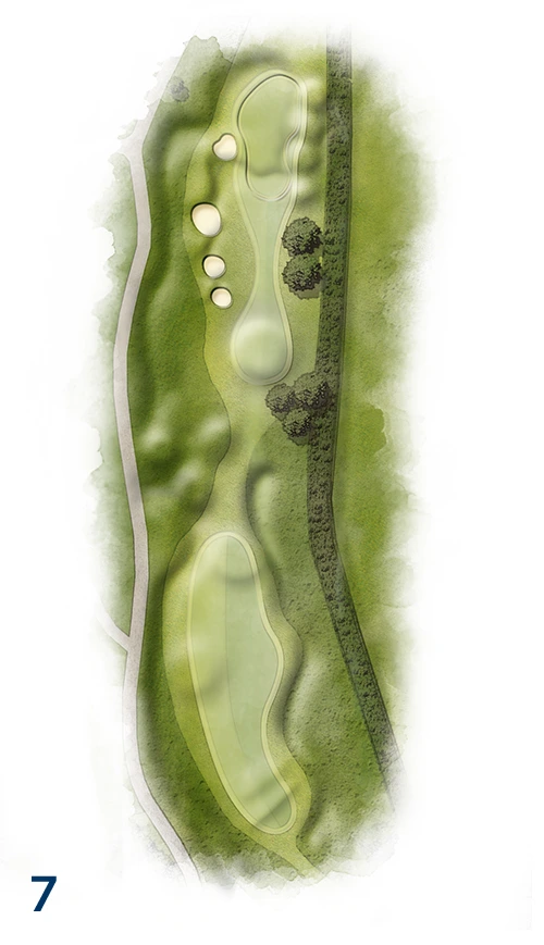 더구나 그린 오른쪽 나무 옆으로 가면 풀이 긴 러프가 있고 나무를 넘겨 온그린하기가 상당히 어렵고 샷이 나무에라도 걸리면 바로 앞 벙커에 들어갈 수도 있어 티샷보다는 세컨드샷과 써드샷이 아주 중요한 홀이다.