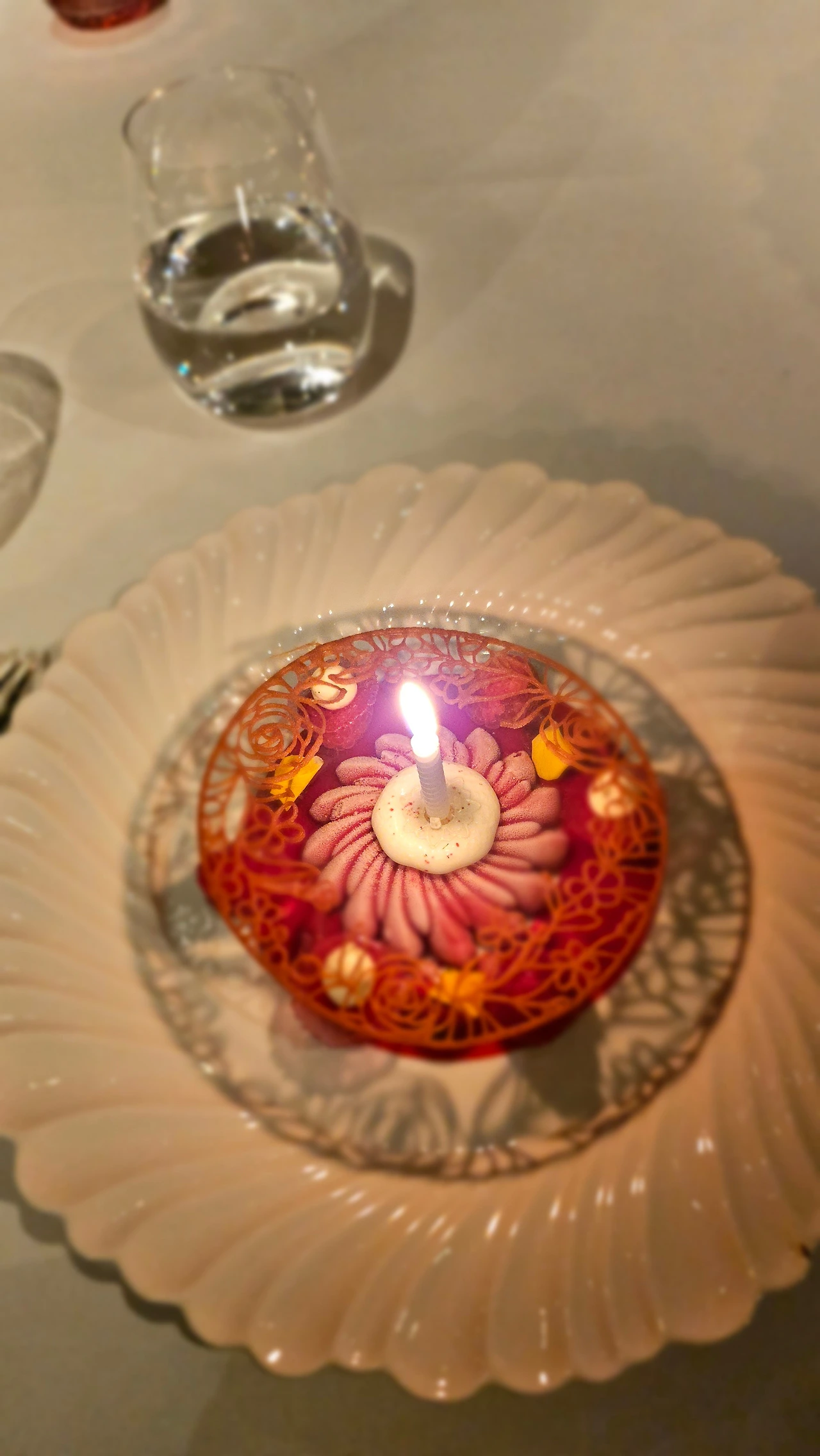 마침 기 사보아씨가 테이블을 돌고 있어 사진을 요청했더니 흔쾌히 들어주시고 결혼 30주년이라고 이야기했더니 마지막에는 촛불과 30개의 크림으로 장식한 예쁜 축하 디저트까지 만들어 주시기도^^