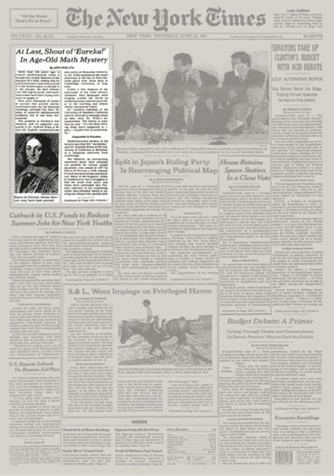 그리고 셋째 날 와일즈가 강의를 마치고, 마지막으로 ‘이쯤에서 끝내는 게 좋겠습니다’라고 하자 우뢰와 같은 박수가 터지고 바로 이 기사는 전 세계에 특종으로 퍼져 나갔다고 한다. 당시 <뉴욕 타임스>에서는 ‘유서 깊은 수학의 미스터리 - "마침내 '유레카!'의 함성이 터지다"(At Last, Shout of ‘Eureka!’ In Age-Old Math Mystery)라는 1면 머리기사가 나갔다고 한다.