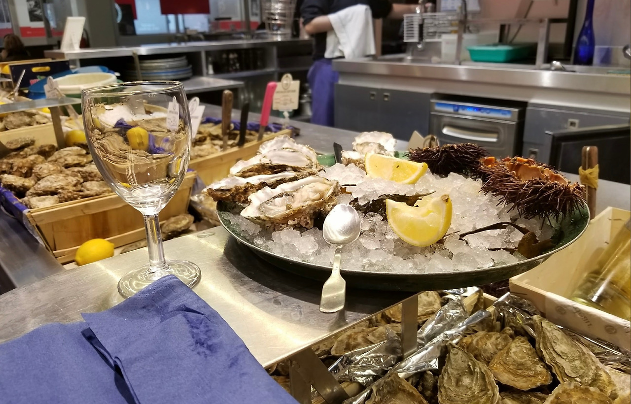 마침 시내 관광 중에 리옹이 자랑하는 전설적인 요리사인 폴 보퀴즈(Paul Bocuse, ‘요리의 신‘, ‘요리계의 교황’ 등으로 불린다고 한다)의 이름을 딴 ‘리옹 폴보퀴즈홀’(Les Halles de Lyon Paul Bocuse)이 있어 호기심에 방문해 보았는데 여기에는 해산물, 고기뿐만 아니라 디저트 등 다양한 프랑스 식당들이 모여 있어 각종 프랑스 요리들을 구경하는 재미가 있었고 우리도 이곳에서 맛있는 해산물 요리를 먹어 보기도^^