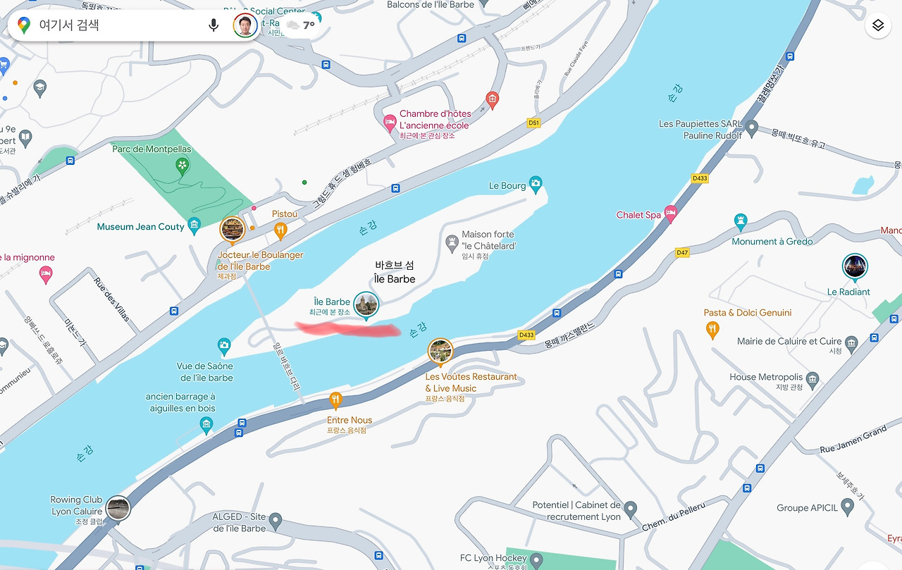 리옹은 시내를 론(Rhône)강과 손(Saône)강이 관통하고 있다. 우리는 손강에 있는 바흐브섬(île Barbe)에 있는 숙소에 묶게 되었는데 이 곳은 수도원의 일부 시설을 개조하여 만든 아주 특이하고 고풍스러운 멋이 물씬 풍겨 나는 멋진 숙소였다(이 수도원 자체가 유명 관광지라고 한다).