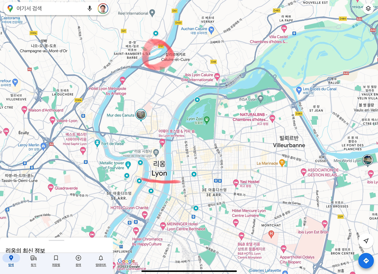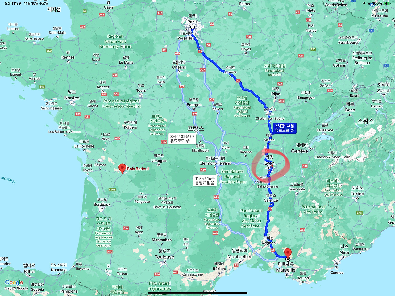 파리에서 남부 프랑스에서 머물 예정이었던 니스 부근의 렁벡(Lambesc)까지는 약 730킬로미터의 거리로 파리에서 하루에 직접 가기는 부담스러워 우리는 2/3 정도 지점인 리옹에서 1박을 하고 가기로 했다.