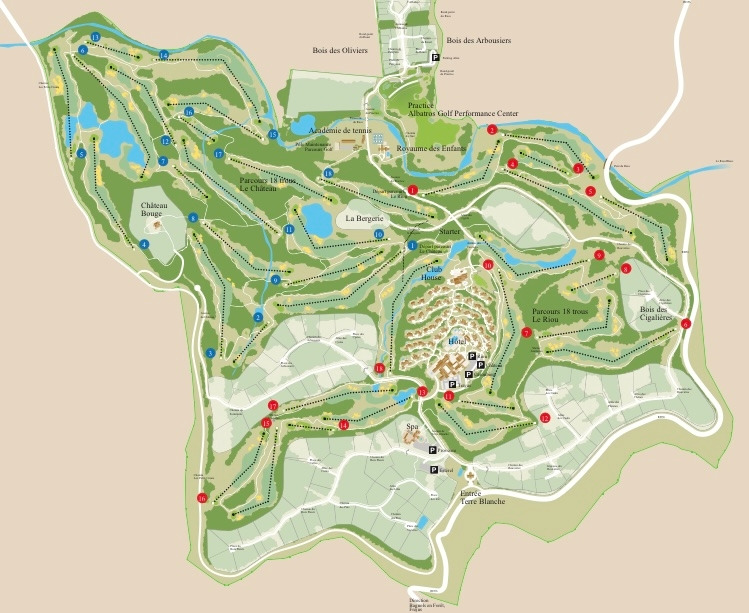 테르 블랑쉬에서는 회원 전용의 챔피언쉽 코스라고 하는 ‘샤토 코스’(18홀, 파72, 7,235야드, 홈페이지에서는 “Le Château was ranked 12th among the Best Courses in Continental Europe by Golf World Magazine UK”라고 자랑하고 있다)가 대표적인 코스인 것 같다.