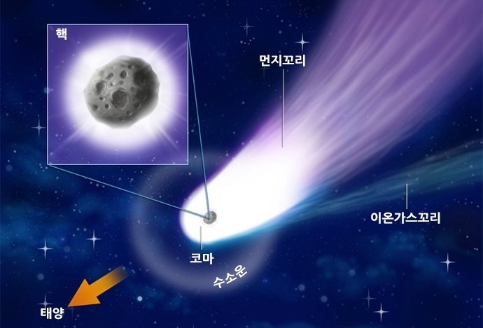 혜성은 대부분 ‘얼음’으로 이루어져 있다. 천문학에서 흔히 사용되는 ‘얼음’이라는 표현은 순수하게 물로 된 얼음만을 가리키는 것이 아니다. 물, 메탄, 암모니아들의 혼합물이 결빙된 것을 총체적으로 ’얼음‘이라고 지칭한다. 이러한 얼음 물질에 미세한 암석 티끌들이 한데 엉겨 붙어서 혜성의 핵을 이룬다. 웬만한 크기의 혜성 조각이 지구 대기와 충돌한다면 혜성은 거대하고 눈부신 불덩어리로 변하고 강력한 충격파를 발생시킬 것이다.