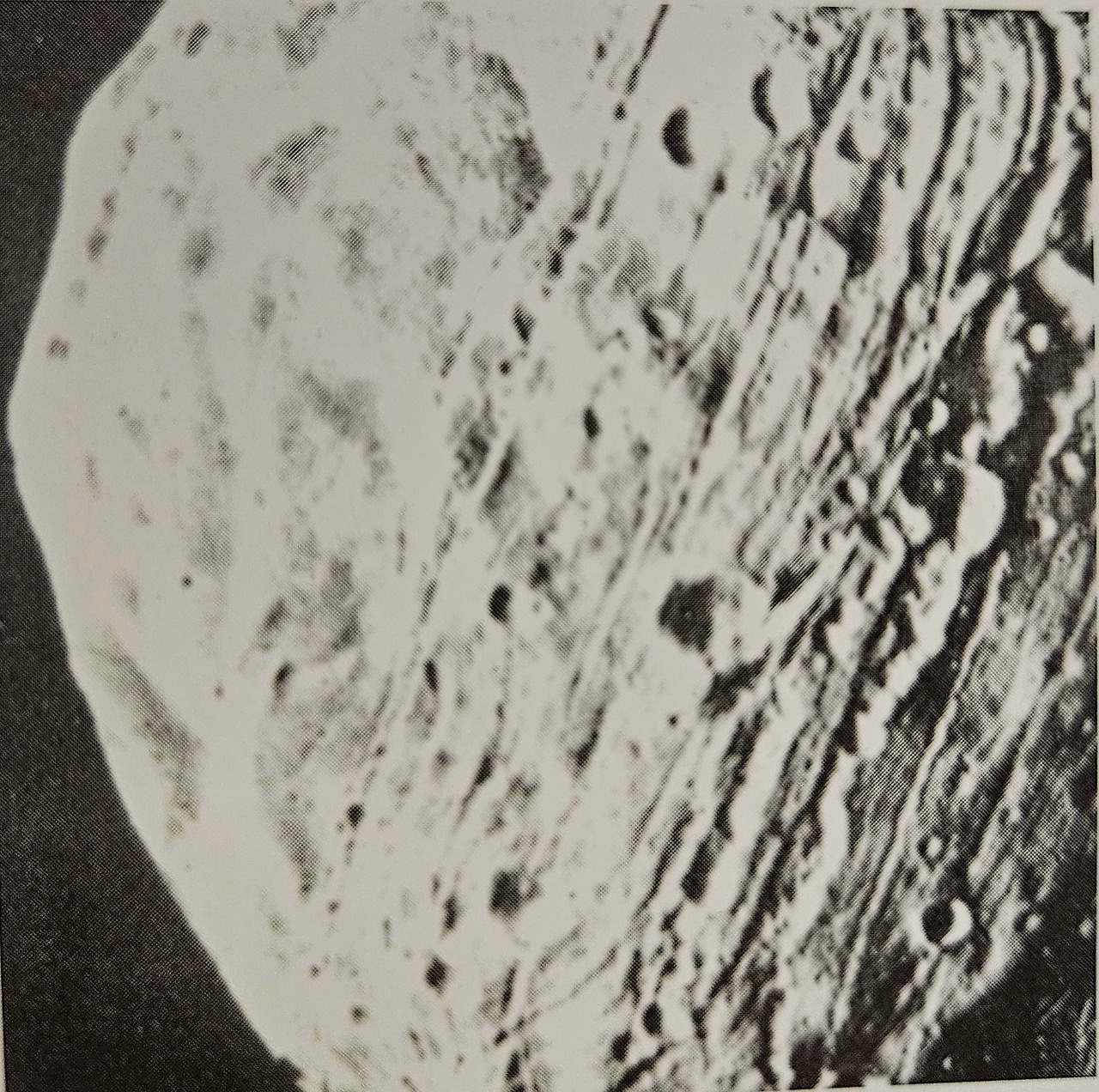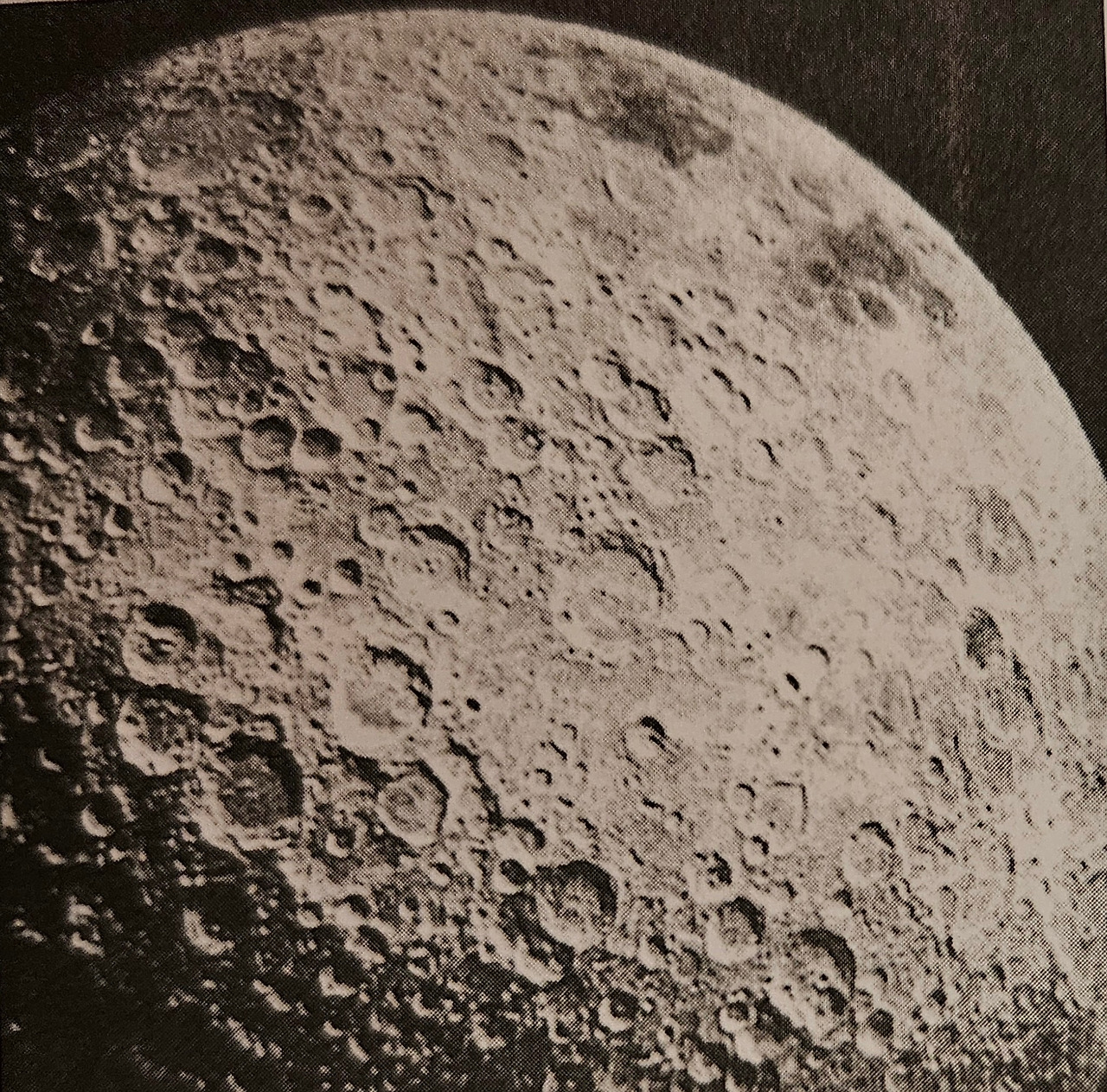 아래 사진은 아폴로 궤도선에서 찍은 달의 지구 반대편 표면에 밀집된 운석공들 사진이다.