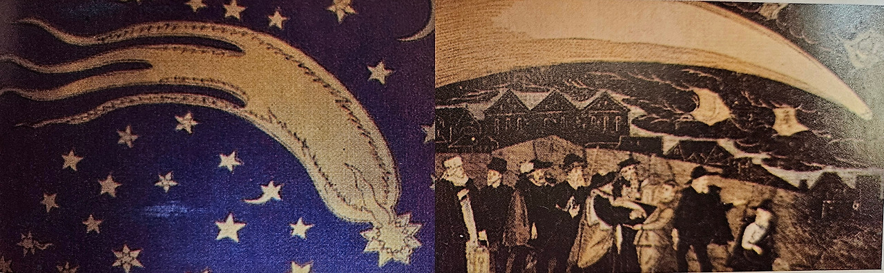 1577년에 출현한 대혜성을 터키인들이 묘사한 그림과 페터 코디킬루스가 프라하에서 찍어 낸 대형 판화