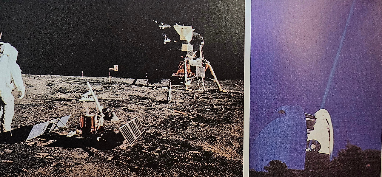 지구에서 아래 사진의 아폴로 16호의 레이저반사 실험 장치에 레이저 광선을 쏘고 월면 반사경에서 반사되어 지구에 돌아오는 데 걸리는 시간을 측정하여 지구와 달 사이의 거리와 칭동 주기와 진폭 등을 측정한다.