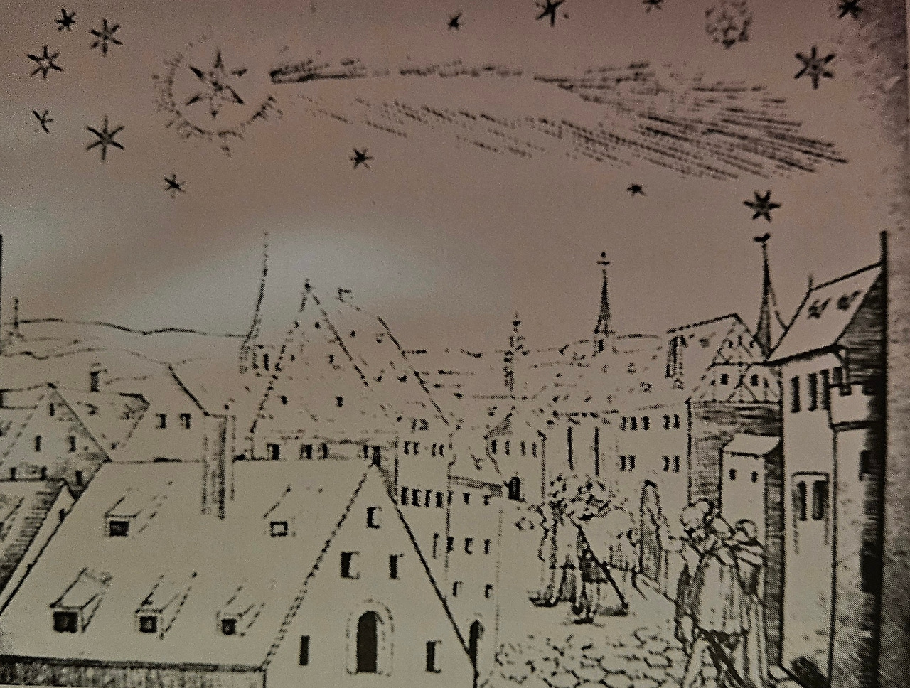1566년 혜성을 뉘른베르크로 추정되는 독일의 한 마을에서 묘사한 그림