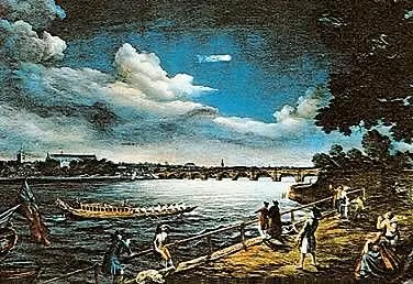 초승달이 밝게 떠 있었는데, 여느 때와 마찬가지로 달의 뾰족한 양쪽 끝이 동쪽으로 기울어져 있었다. 그런데 갑자기 위쪽 끝이 둘로 갈라지면서 그 한복판에서 타는 듯한 횃불이 솟아올라 화염과 함께 작렬하는 석탄 덩이와 섬광을 흩뿌렸다.