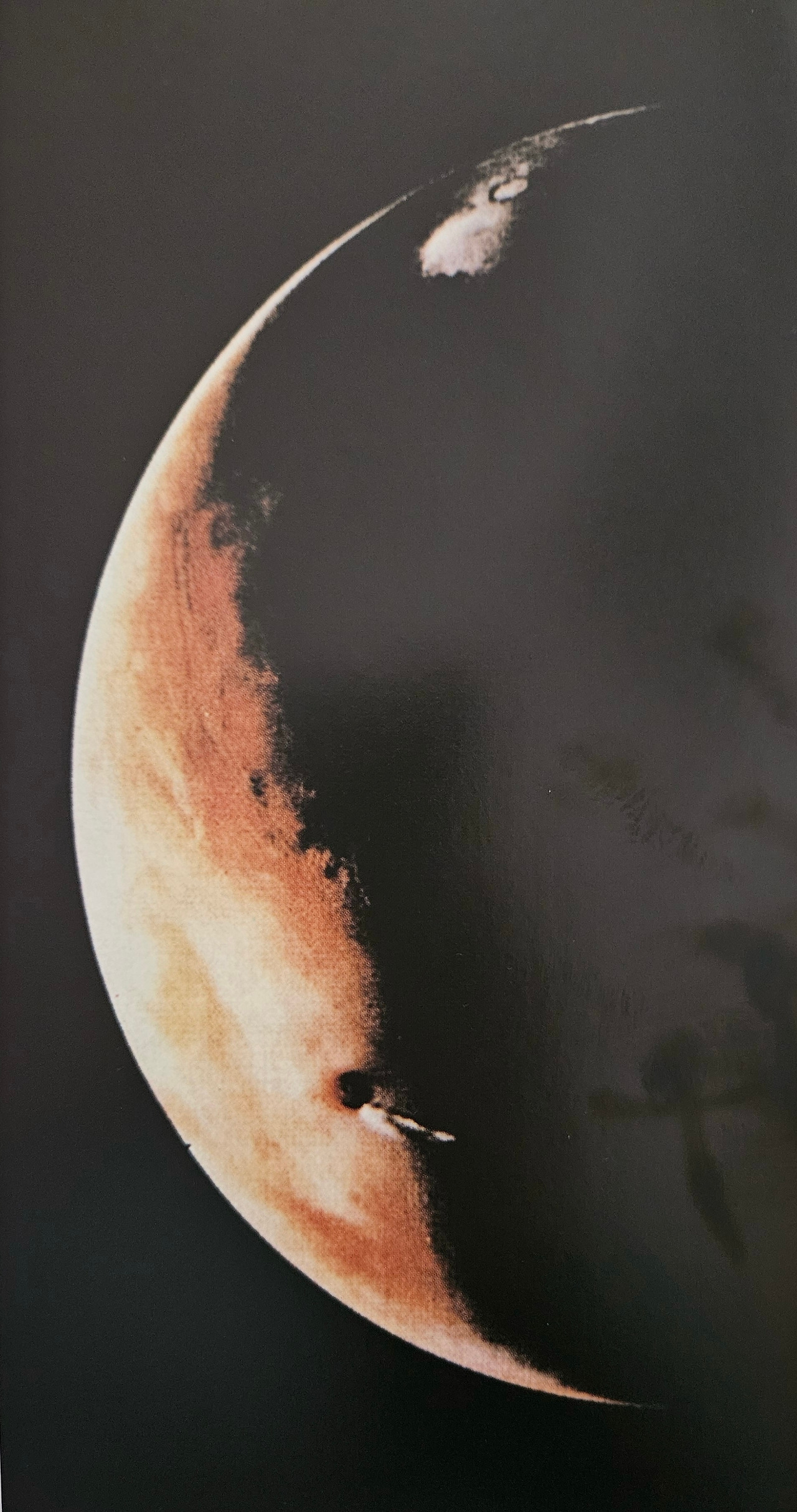 화성의 경관은 황량하고 붉고 아름다웠다고 한다. 하지만 그 사진에는 운하를 건설하는 기사도 바르숨의 비행 자동차나 단도도 찾아볼 수 없었고 시야에 들어오는 경관에는 생명의 징조라고는 아무것도 없었다고 한다.