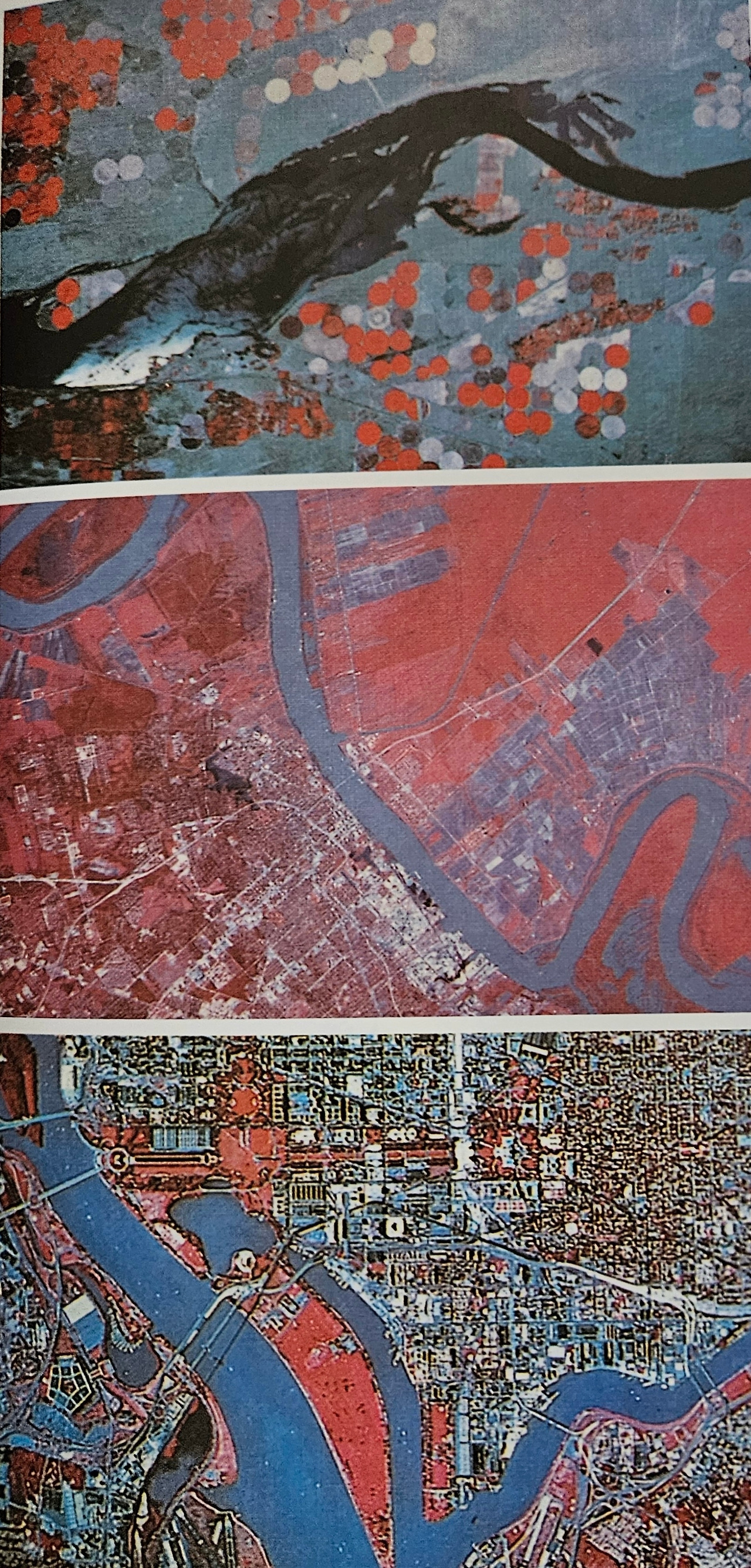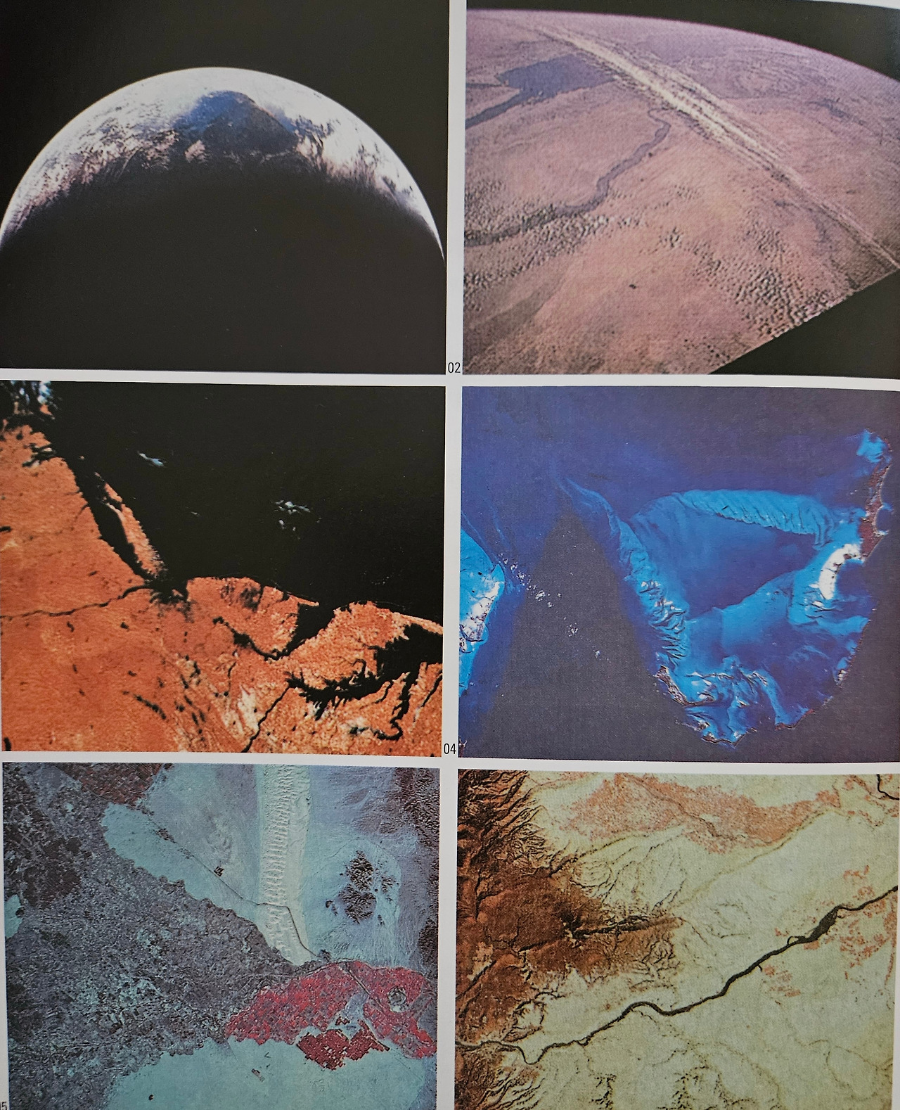 만약 낯선 행성에서 지구에 접근하고 있다고 상상할 때, 아래 사진들을 보면 수백 킬로미터 분해능(아래 그림 맨 왼쪽 위 01)이나 수십 킬로미터(02), 적외선 10킬로미터 분해능(03, 04 바하마군도 베리섬과 산호 바위)으로도 생명의 흔적은 확인할 수 없다. 수십 미터의 분해능을 구현해야(05, 06, 아래 그림 왼쪽 07, 08, 09) 비로소 지구상의 지적 생물의 존재가 분명해진다. 그러나 밤이 되면 완전히 다른 것들이 보이기 시작한다.