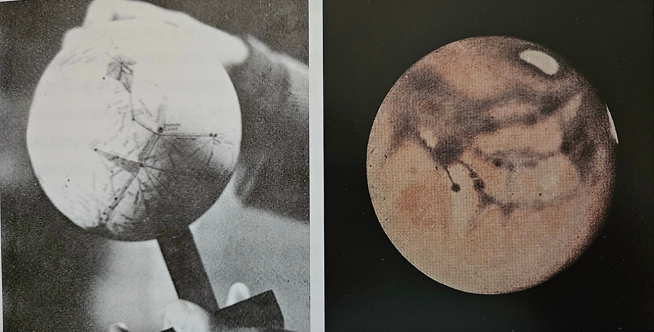 그런데 그전인 1877년 이탈리아의 천문학자 조반니 스키아파렐리가 화성의 ‘카날리(canali)’에 관한 연구를 발표했는데, 그는 한 개 혹은 두 개의 직선들이 복잡한 네트워크를 이루며 이 행성의 밝은 지역 여기저기를 가로지르는 것을 보고 이것을 “카날리”라고 불렀다. 이 단어는 영어권에서 ’운하‘로 번역되면서 화성의 열풍이 유럽과 미국을 휩쓸기 시작했다.