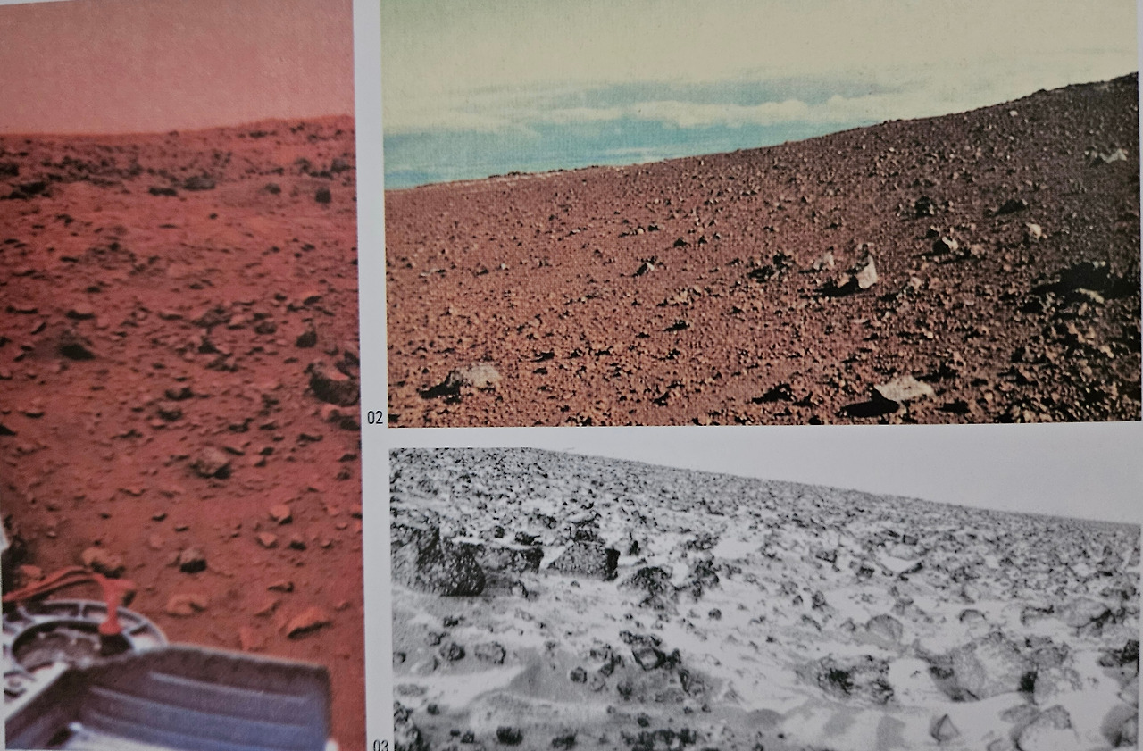바이킹 1호가 인류에게 보낸 화성의 지평선 사진들은, 지구의 콜로라도나 애리조나나 네바다 주 등 지구상의 풍경들과 다를 바가 없는 자연 그대로의 바위 덩이와 모래 언덕들이 무심하게 놓여 있었고 지평선 멀리에는 높은 산이 자리 잡고 있는 풍경이었다고 한다.