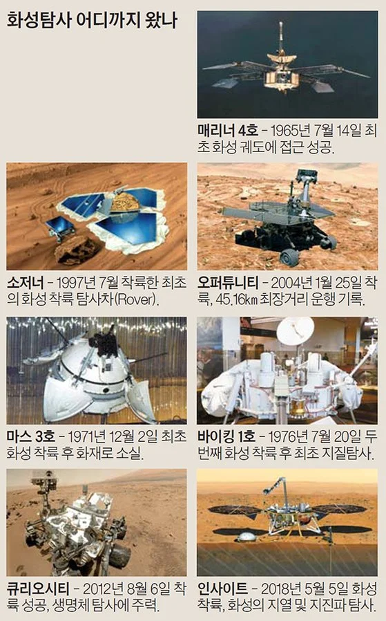 그 동안 화성 탐사의 주요 모멘텀이 된 사건들은 다음과 같다.