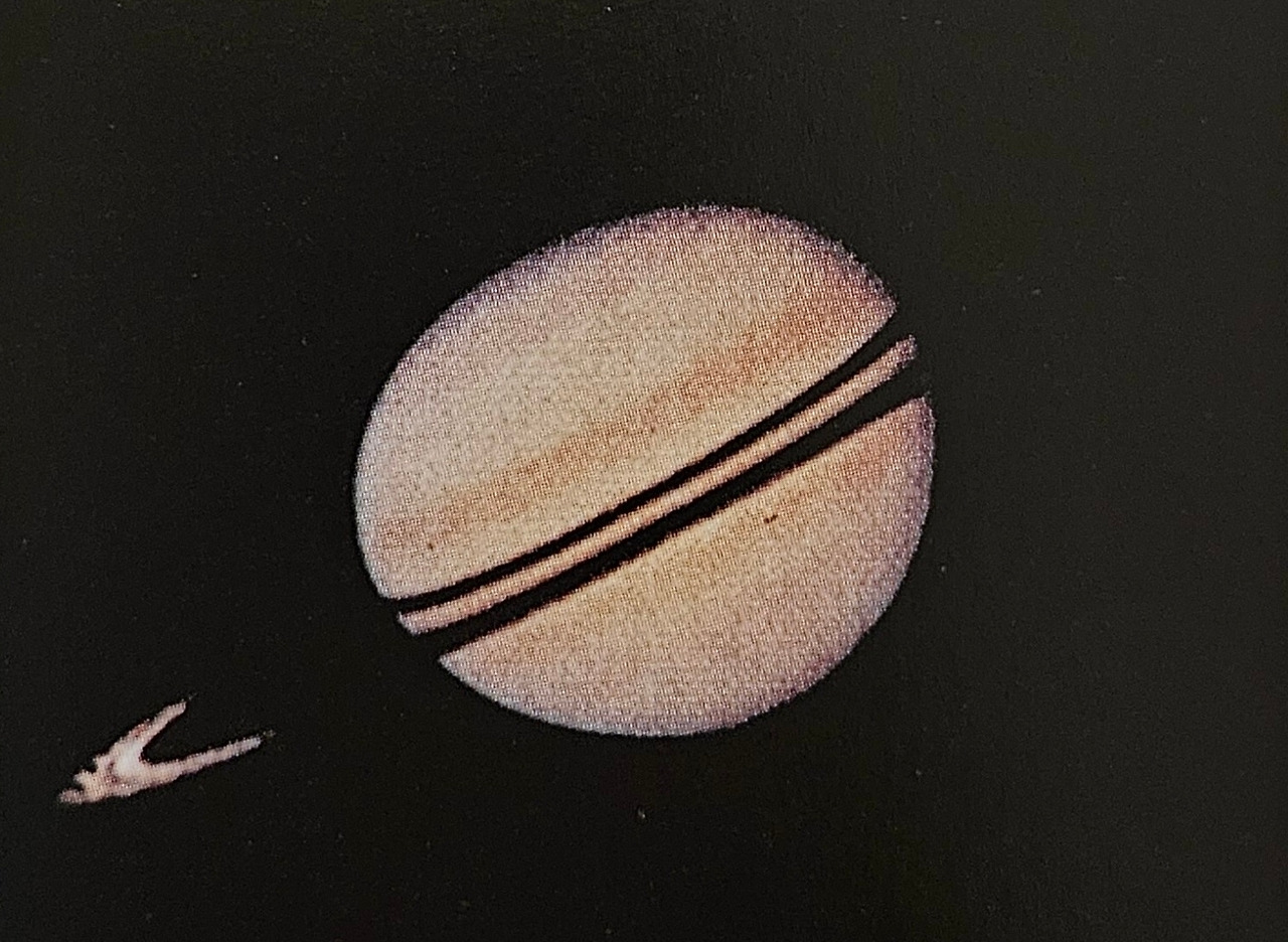 이렇게 만들어진 이미지를 보이저호에 장착된 컴퓨터가 읽어서 숫자 신호로 변환한 다음, 10억 킬로미터나 떨어져 있는 지구상의 전파 망원경으로 송출하고, 그 신호를 스페인과 오스트레일리아 그리고 캘리포니아 모하비 사막에 있는 전파 망원경이 받아서 서로 연결해서 한 장의 인화지 사진이 우리 앞에 나타난다.